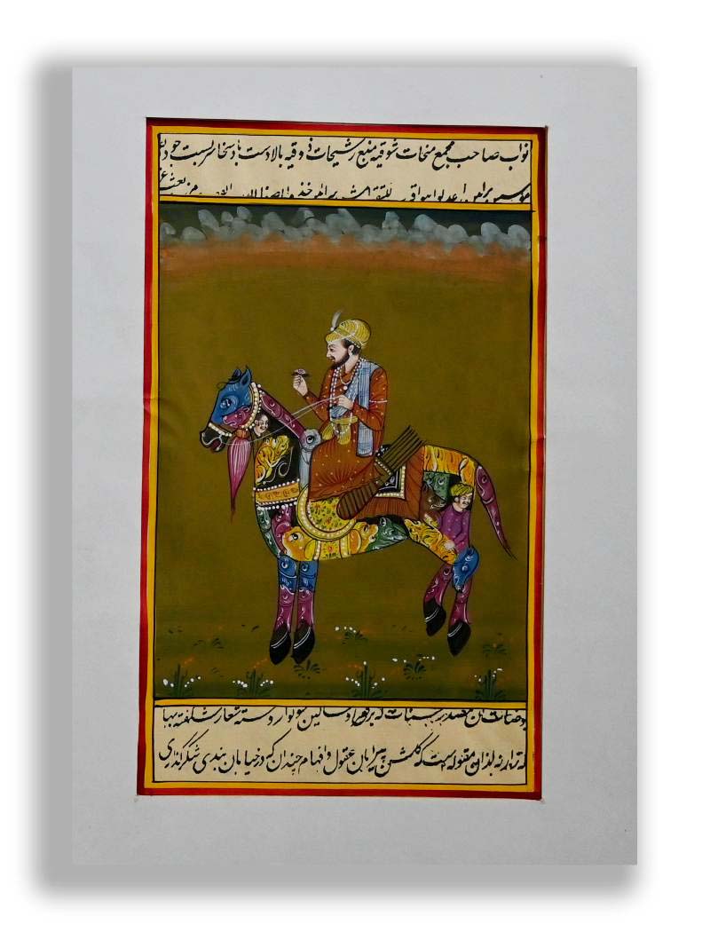 Presenting you the fabulous Mughal Badshah Riding on Composite Horse handmade miniature painting.