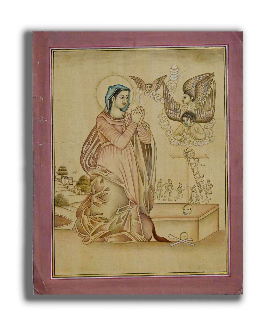 Persian Angel Heaven to Death Skull Handmade Miniature Painting on Paper