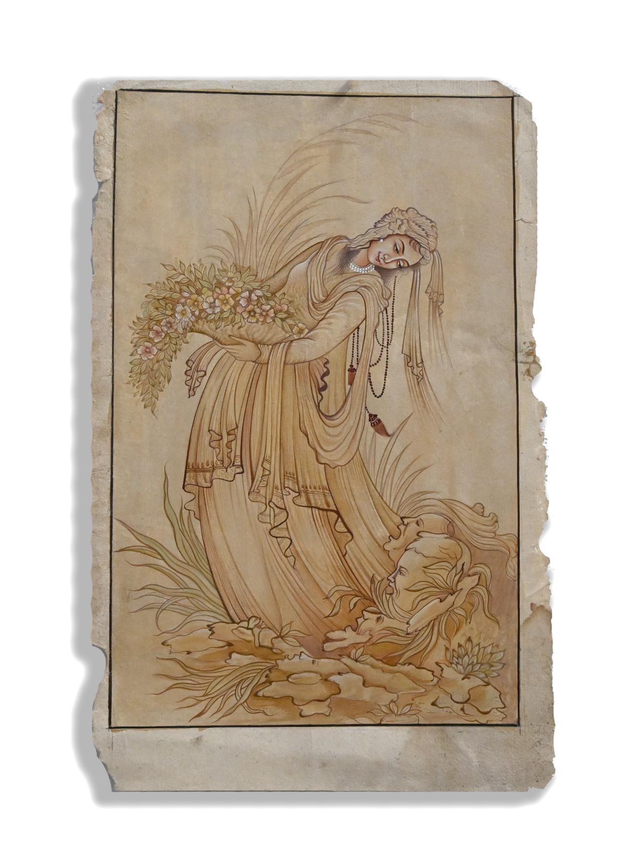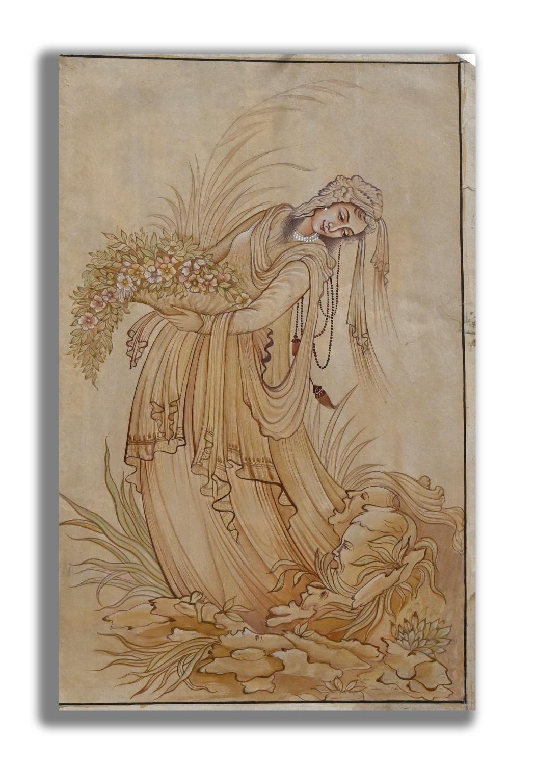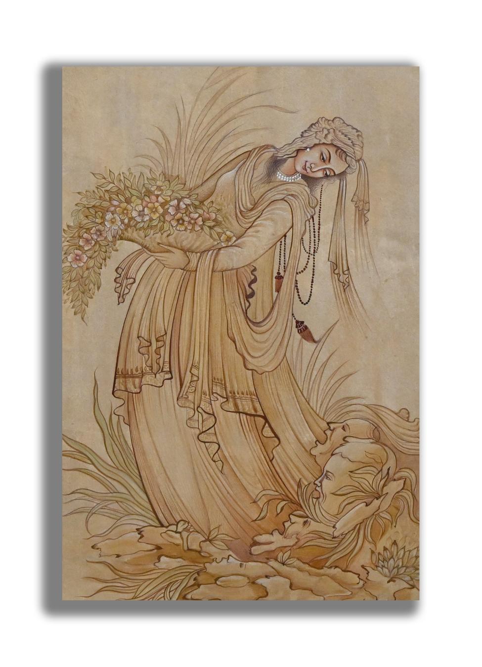 Persian Fairy With Floral Portrait Painting Handmade Miniature Artwork On PaperSubject: Indian Persian Portrait Miniature Painting Paint Material:Water color Presenting you the auspicious tremendous Persian Fairy Angel portrait painting in a garden spreading the flower from her basket. It is not a print. |
