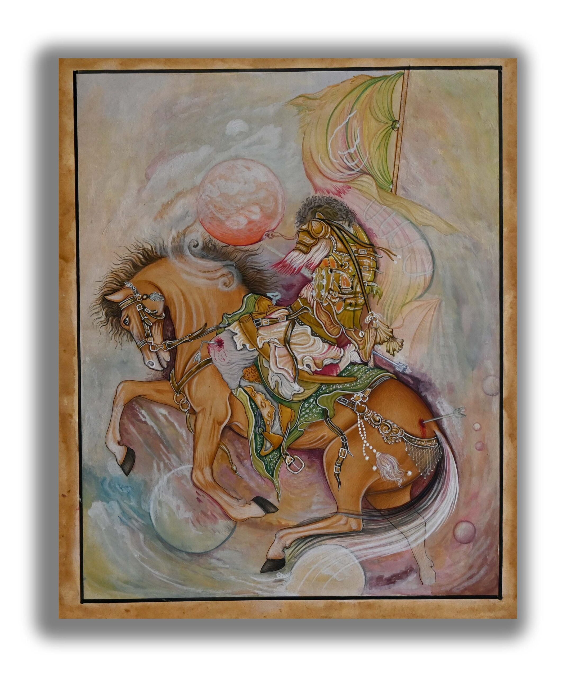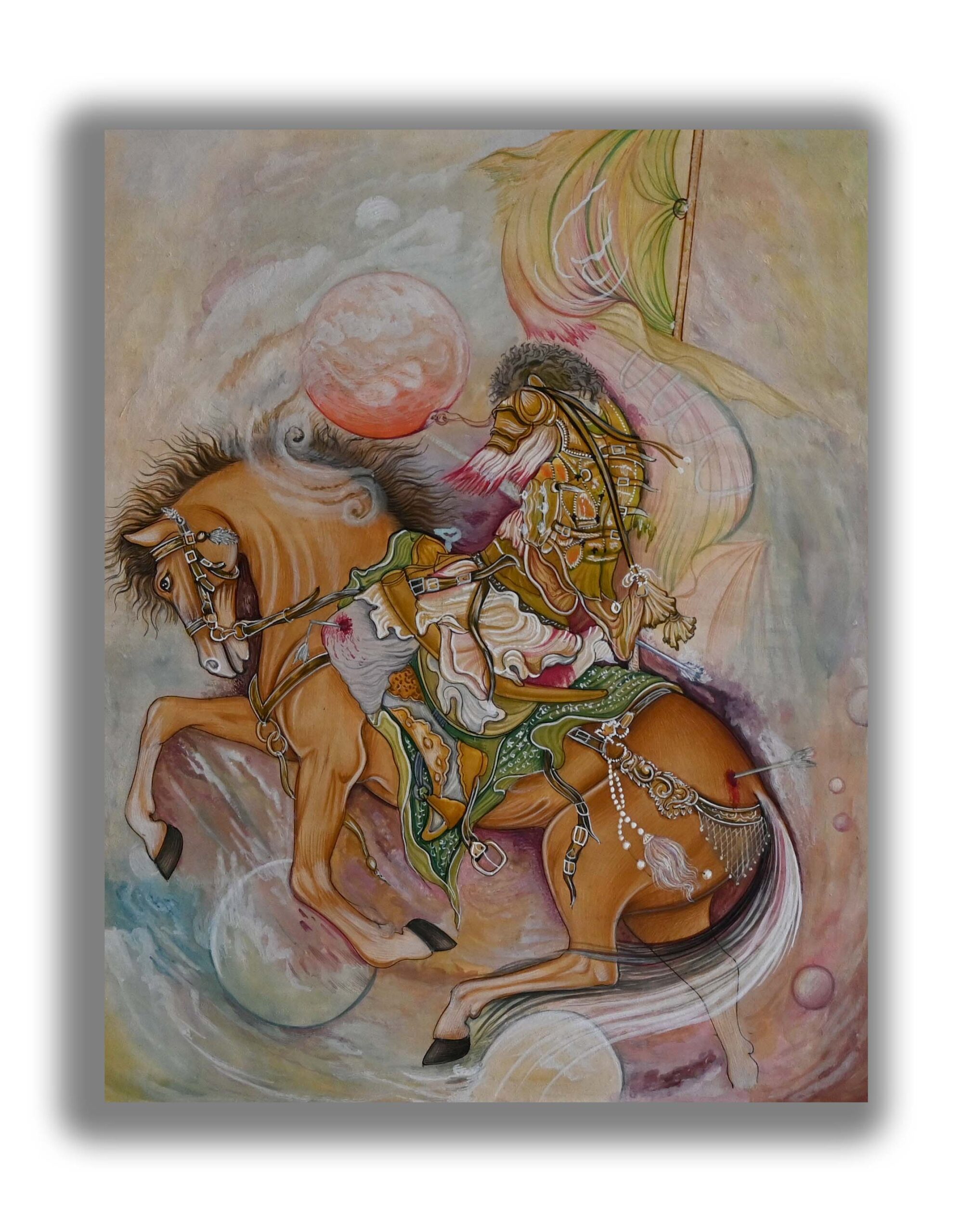 Free Shipping Worldwide & No hassle returnFill your home with the Persian Immortal soldier riding an injured horse handmade miniature painting.