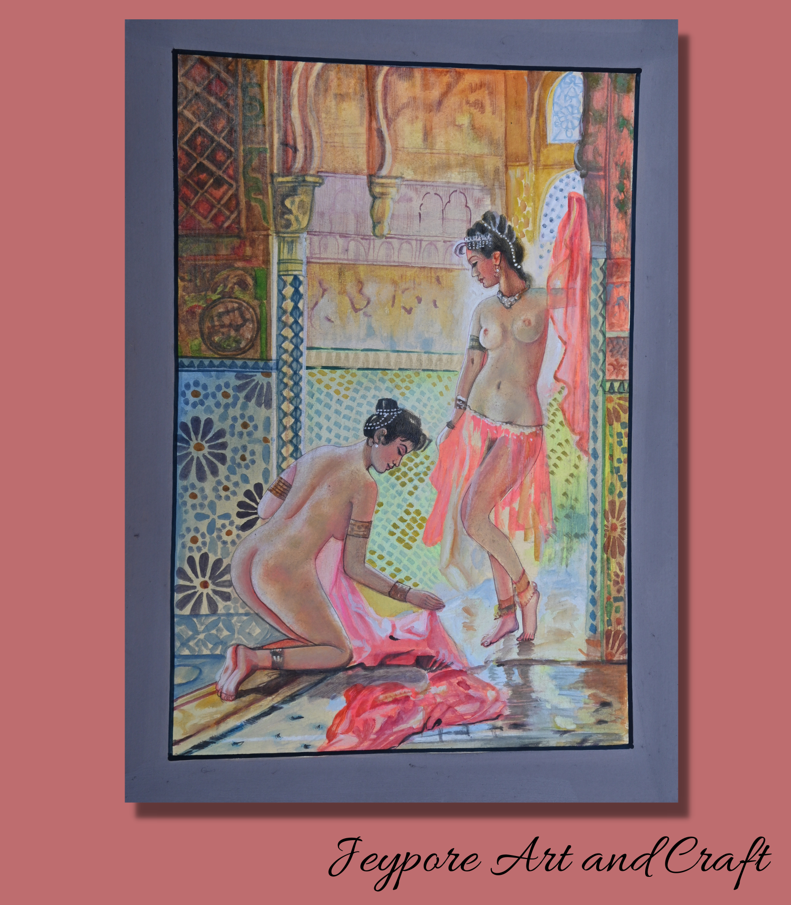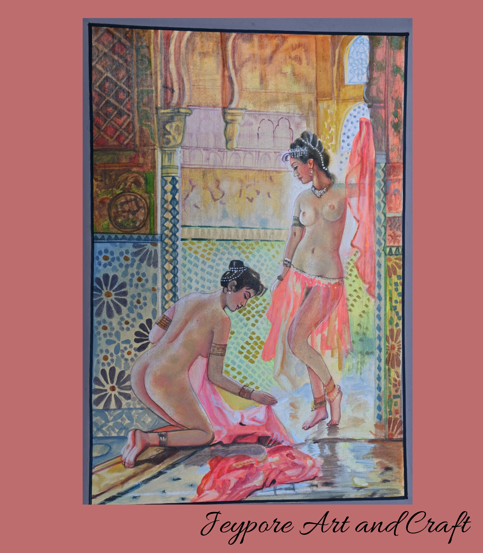 Presenting Persian Nude Women Portrait Taking Shower Handmade Miniature Painting