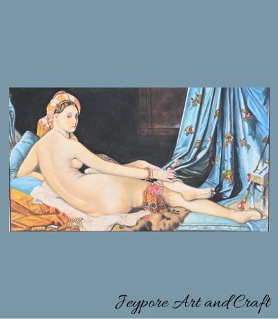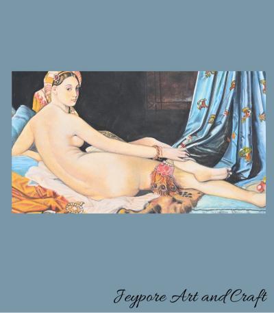 Presenting Persian Nude women portrait painting having a scarf on head.