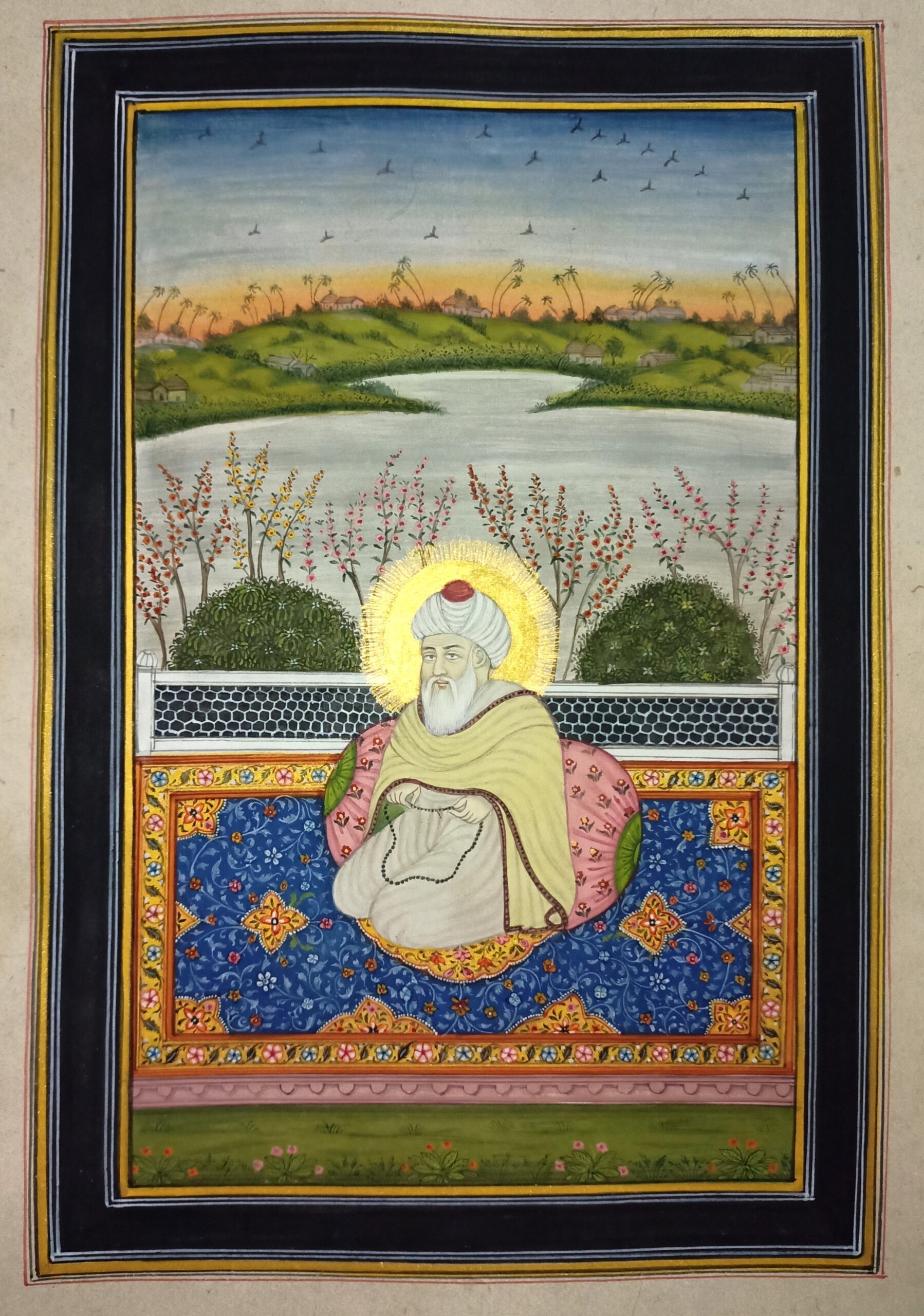 Presenting a rare and dazzling Persian Sufi Praying with His Beads Handmade Miniature Portrait