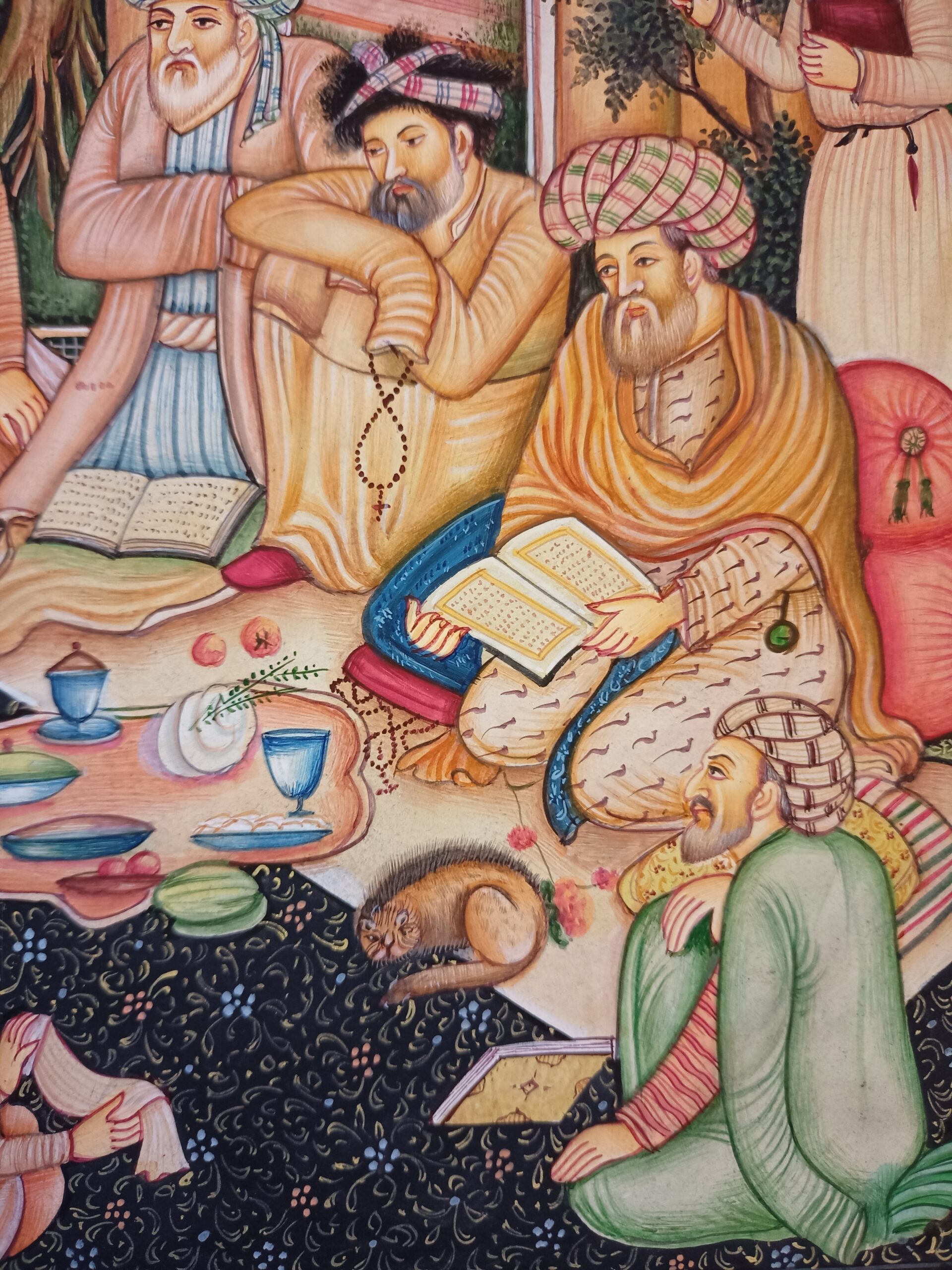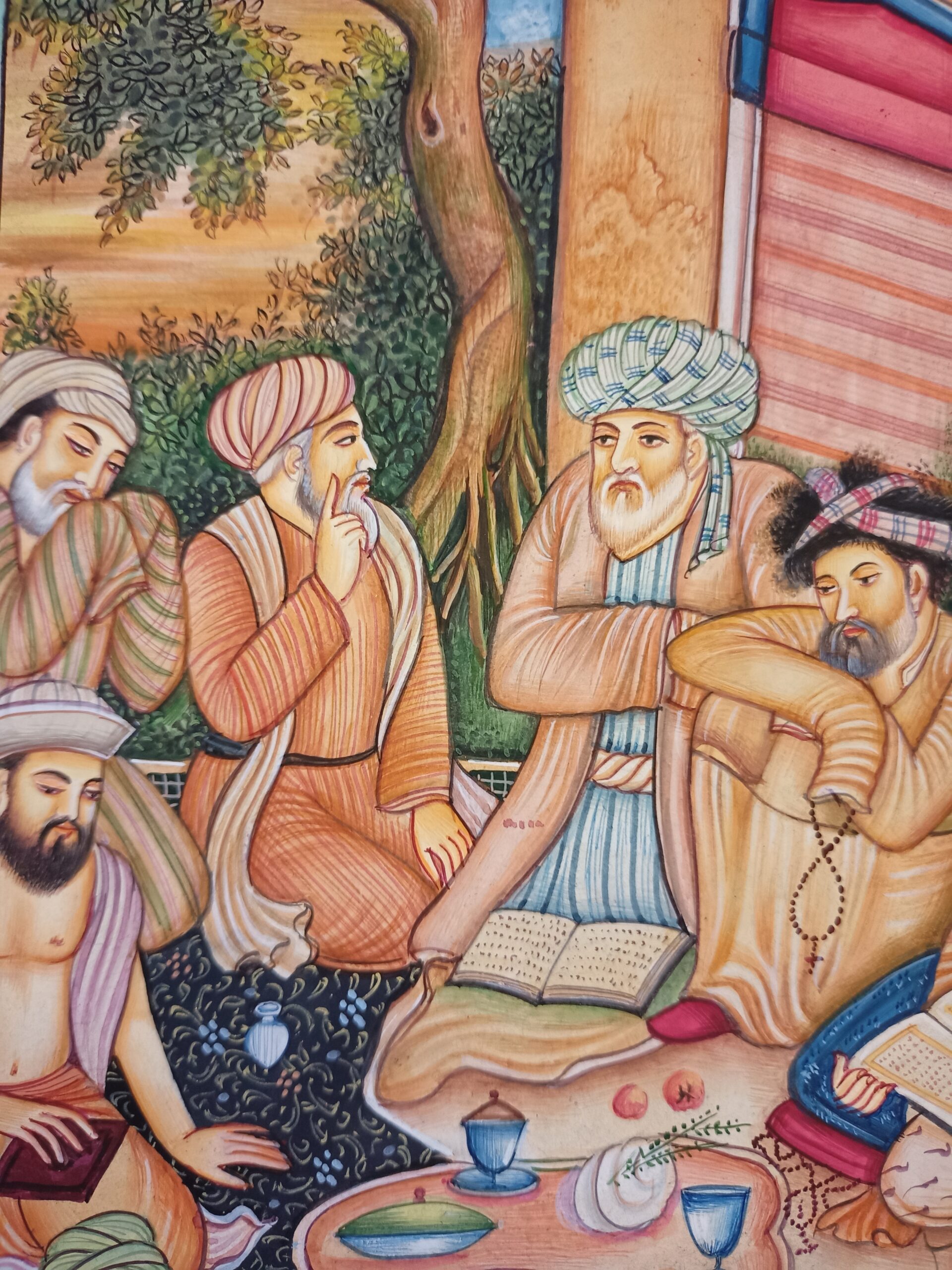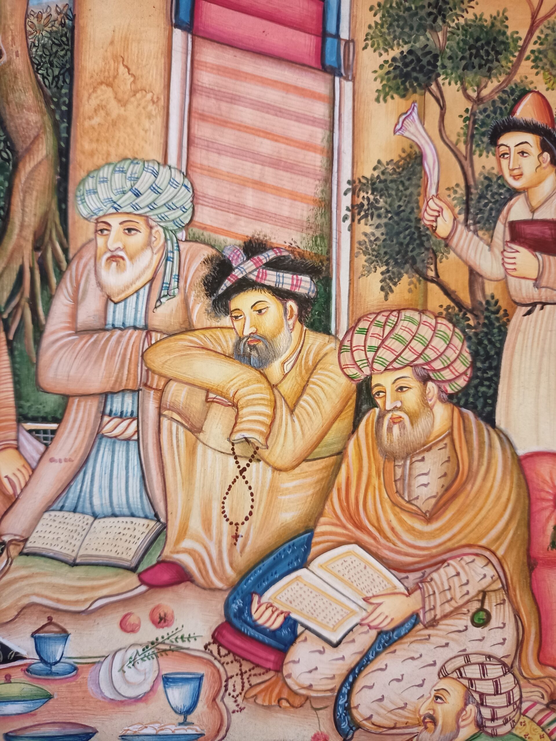 Presenting the Persian Sufi Reading Holy Manuscript Handmade Miniature Painting on Paper