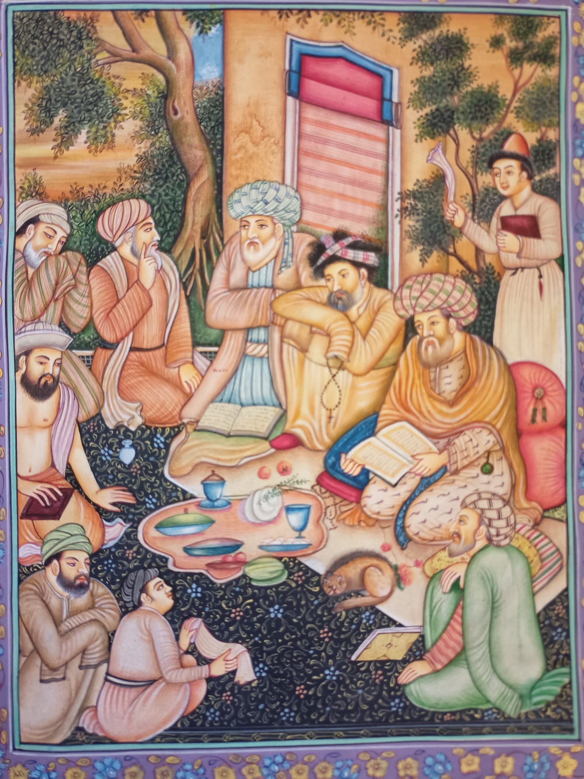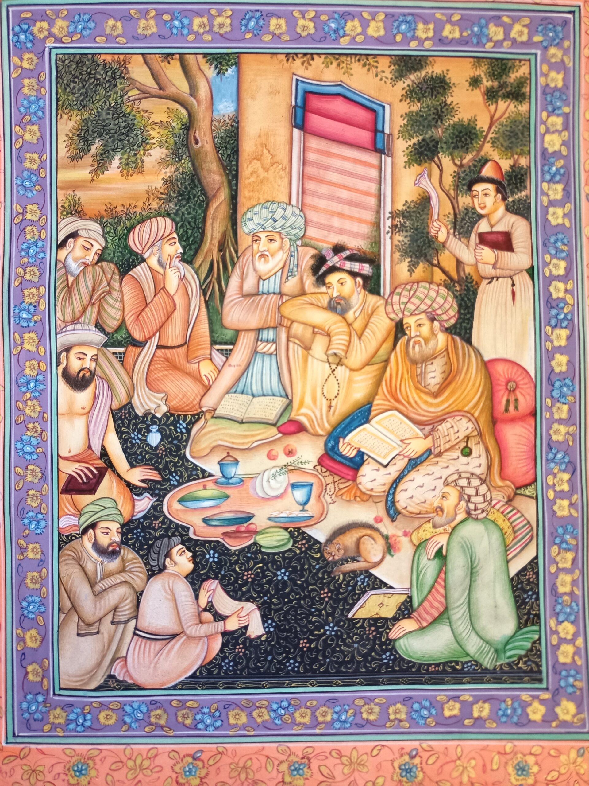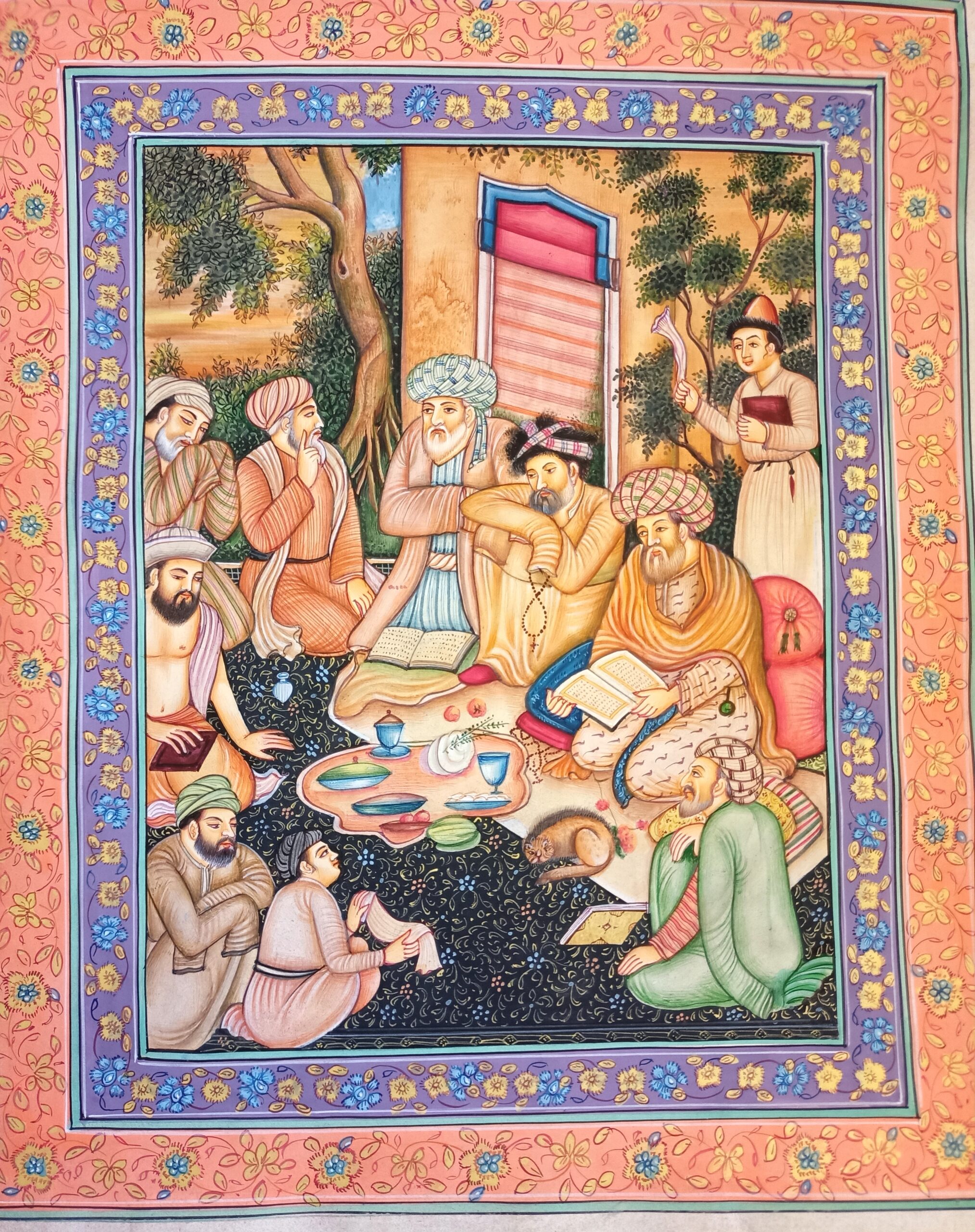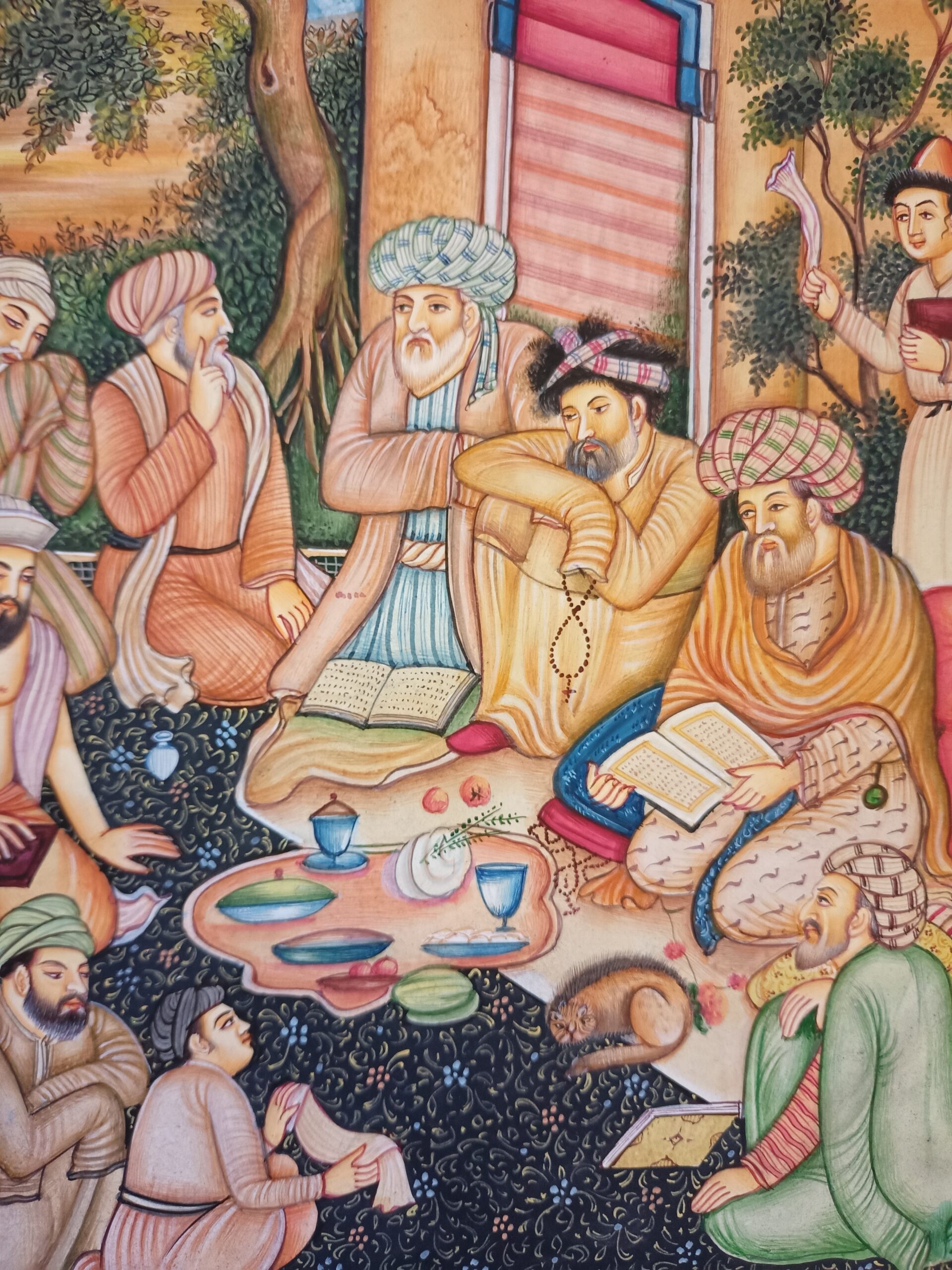 Presenting the Persian Sufi Reading Holy Manuscript Handmade Miniature Painting on Paper