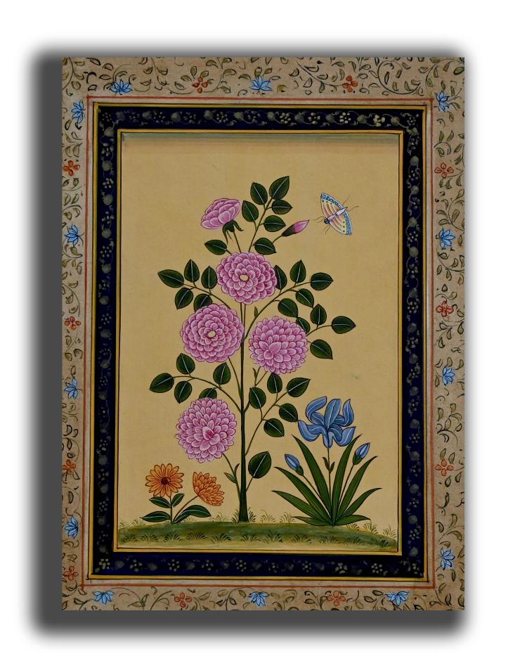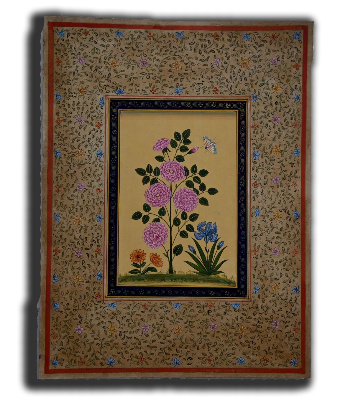 Pink Rose Detailed Miniature Painting of Floral Art with Detailed Floral Border