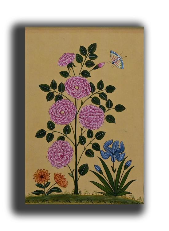 Pink Rose Detailed Miniature Painting of Floral Art with Detailed Floral Border quantity
