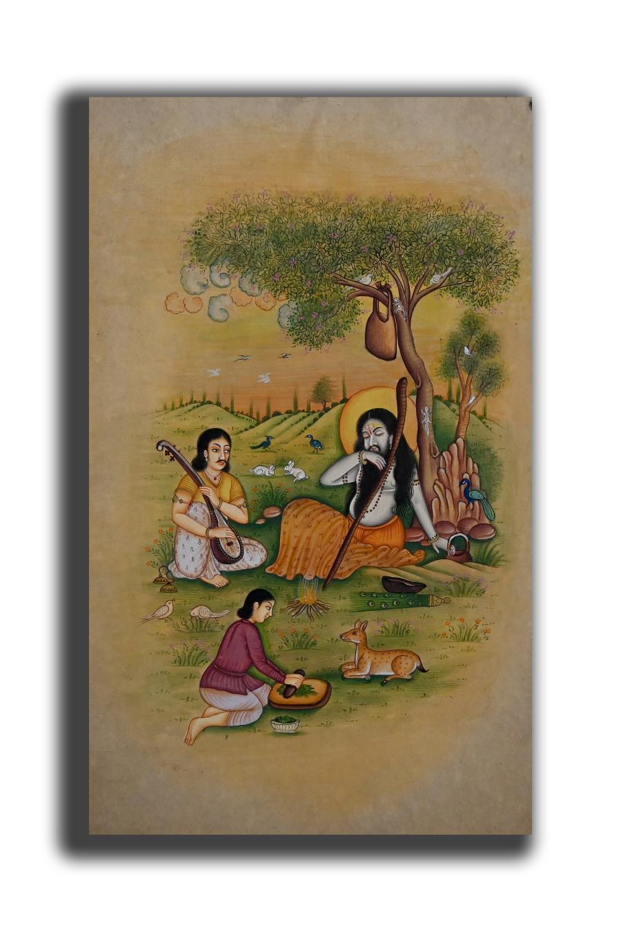 Priest Monk with Sevadar Miniature Painting Handmade Art on Paper