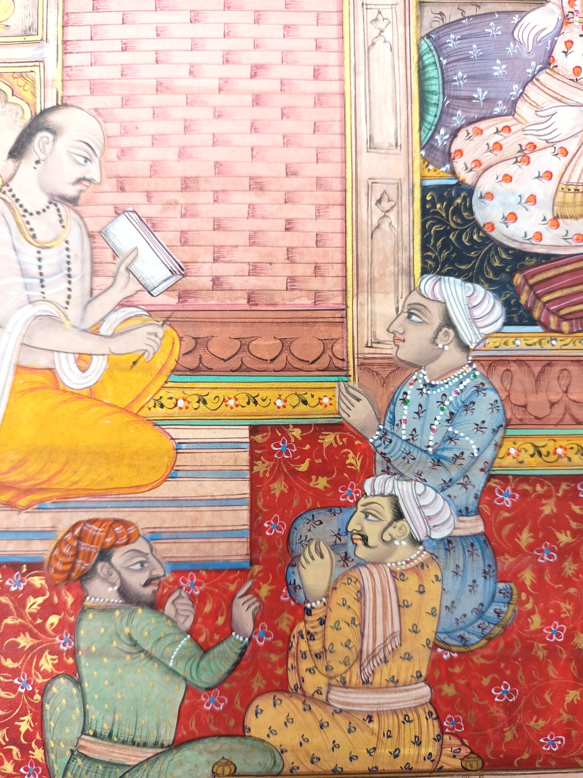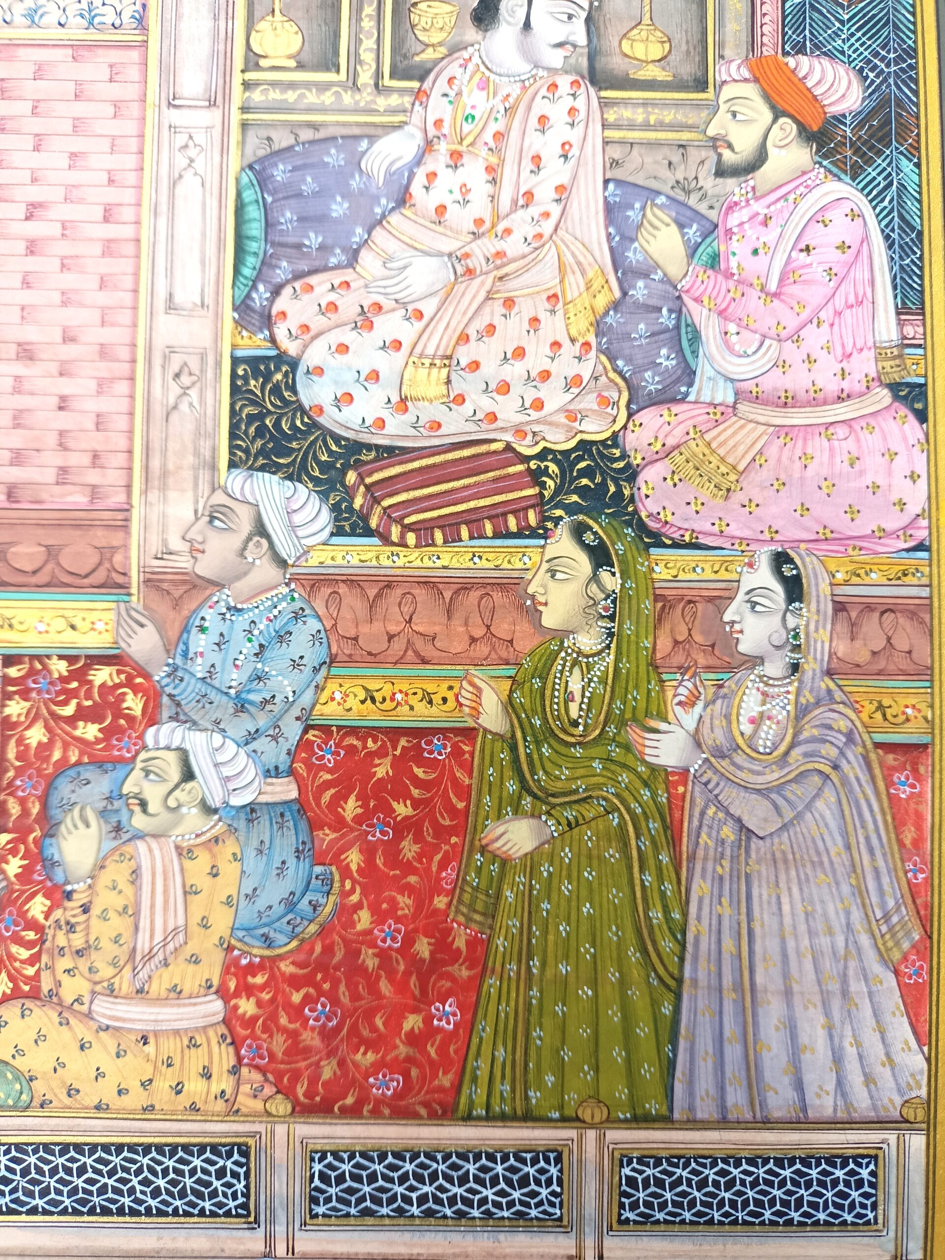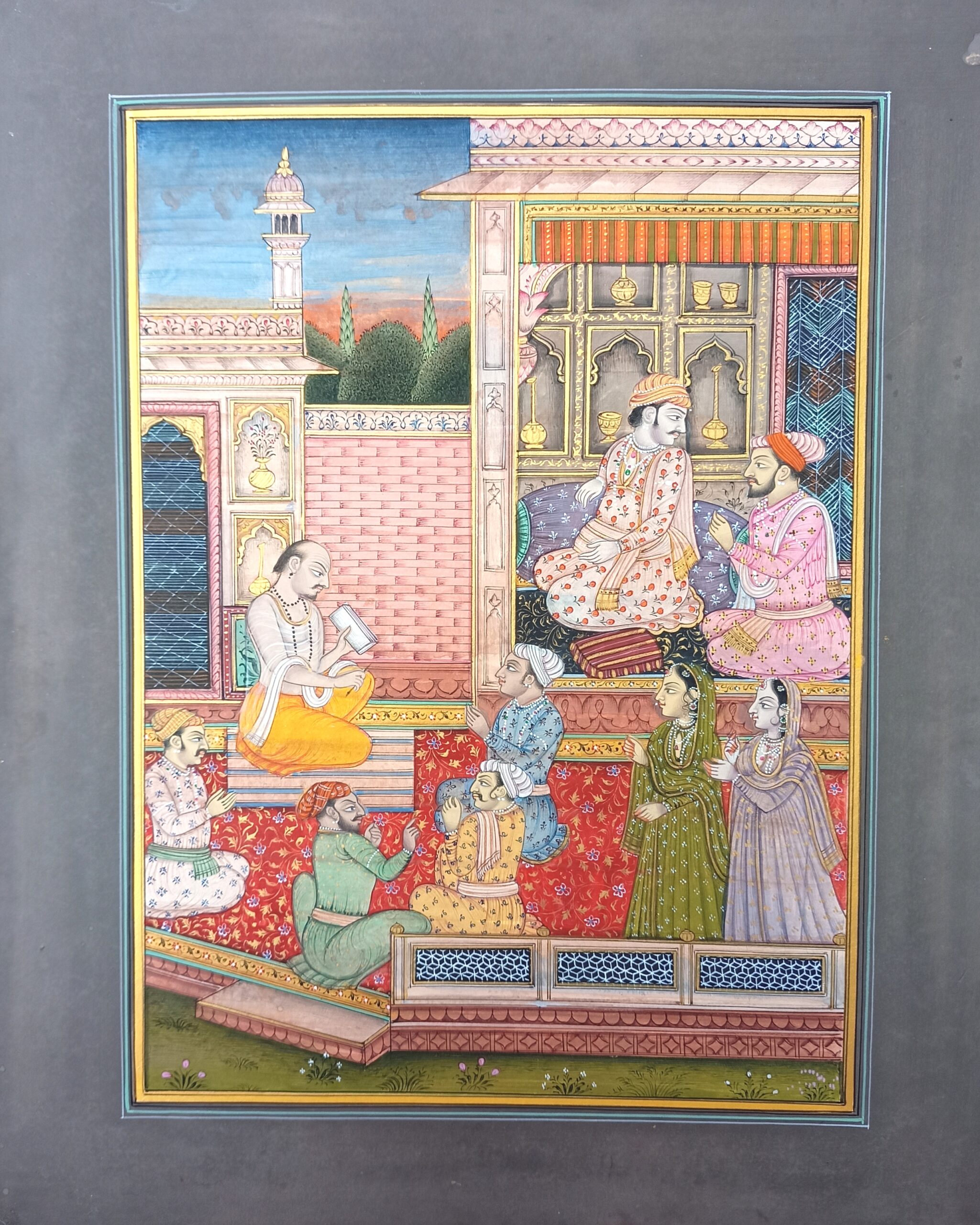 Priest Suggesting the Girls to Maharajah for Wedding His Son Handmade Painting