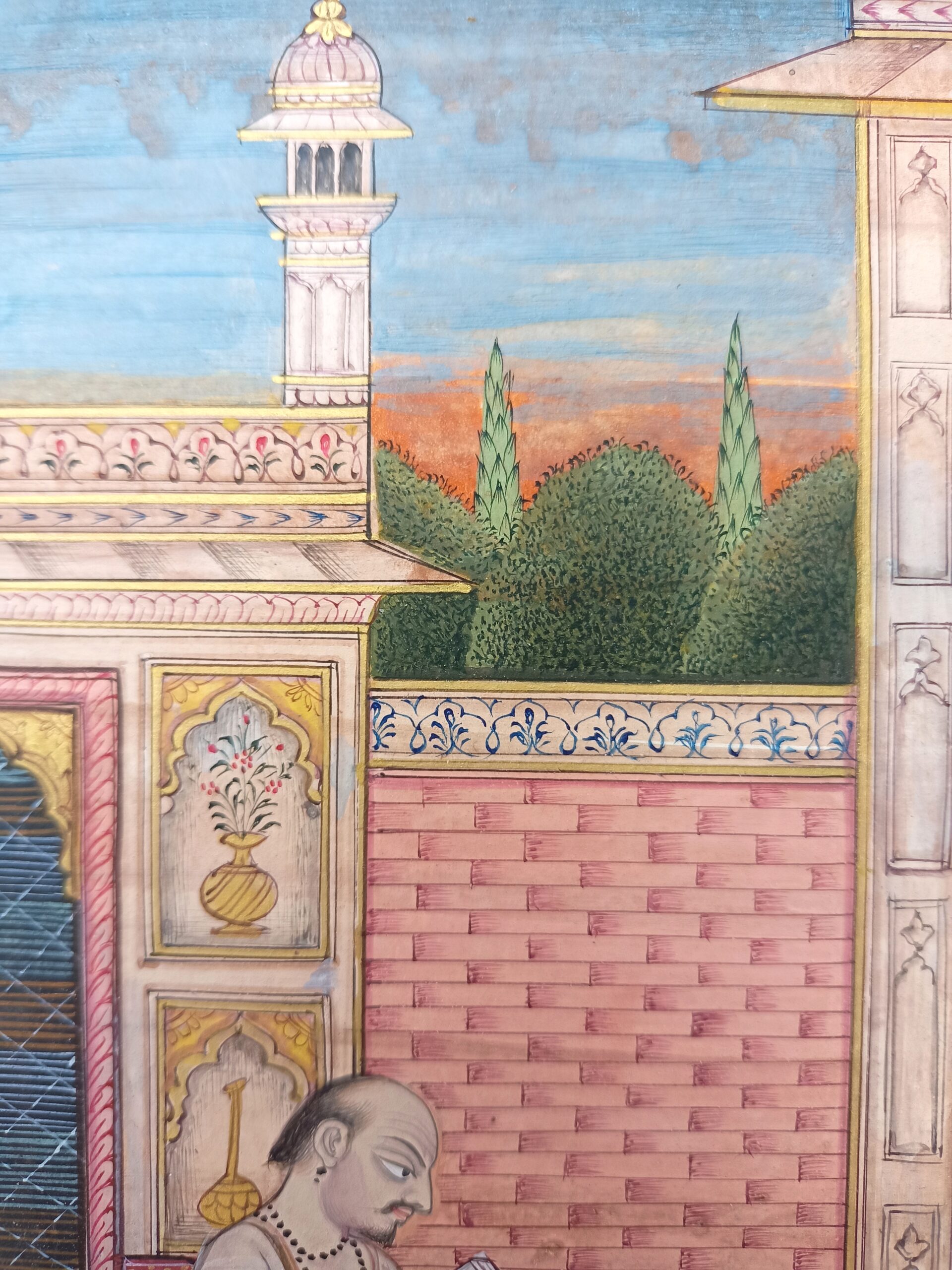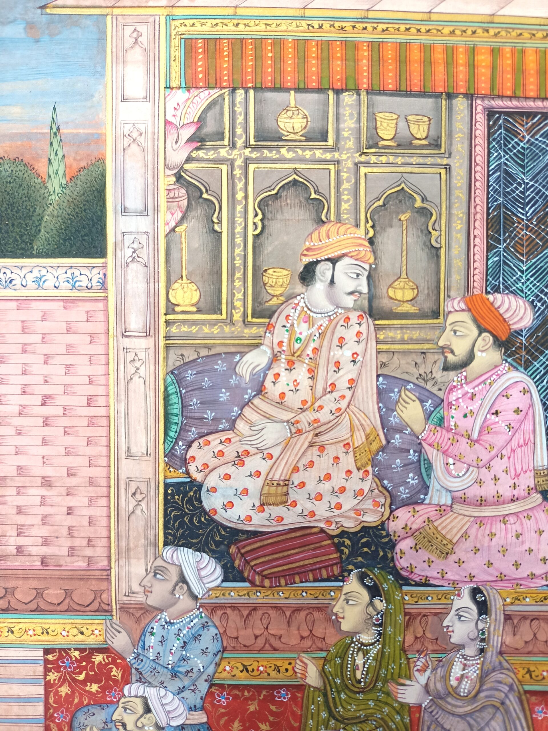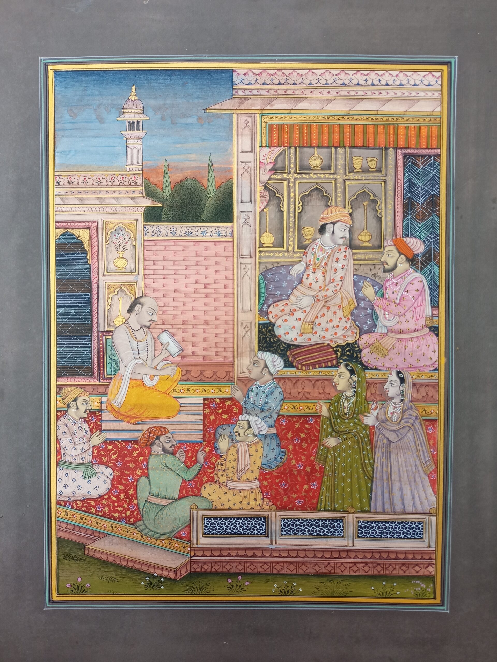 Priest Suggesting the Girls to Maharajah for Wedding His Son Handmade Painting