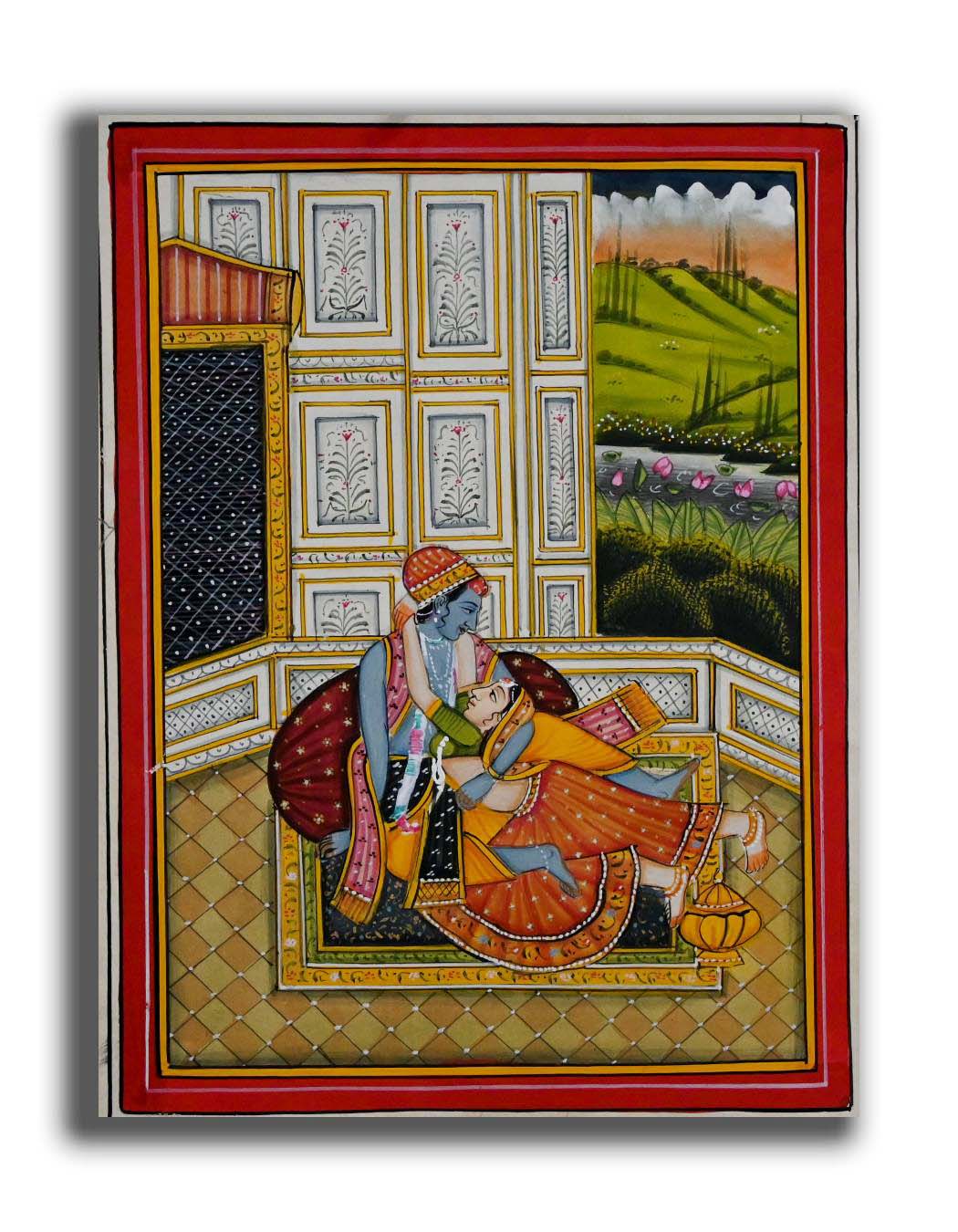Radha Krishna Miniature Painting Watercolor Old Painting