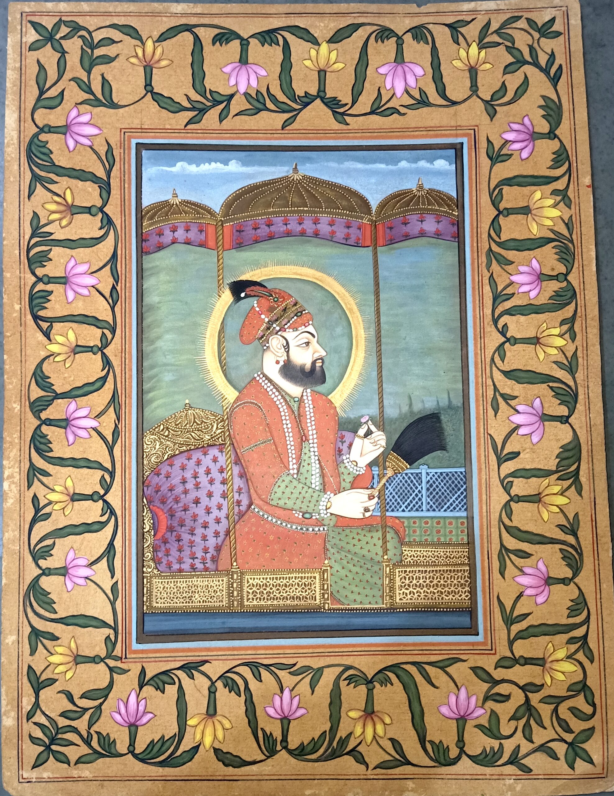 Rajputana Maharajah Portrait Handmade Painting with Floral Border
