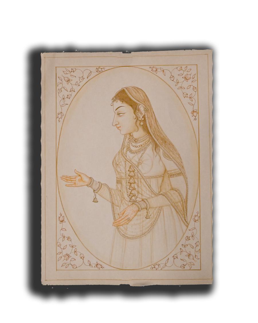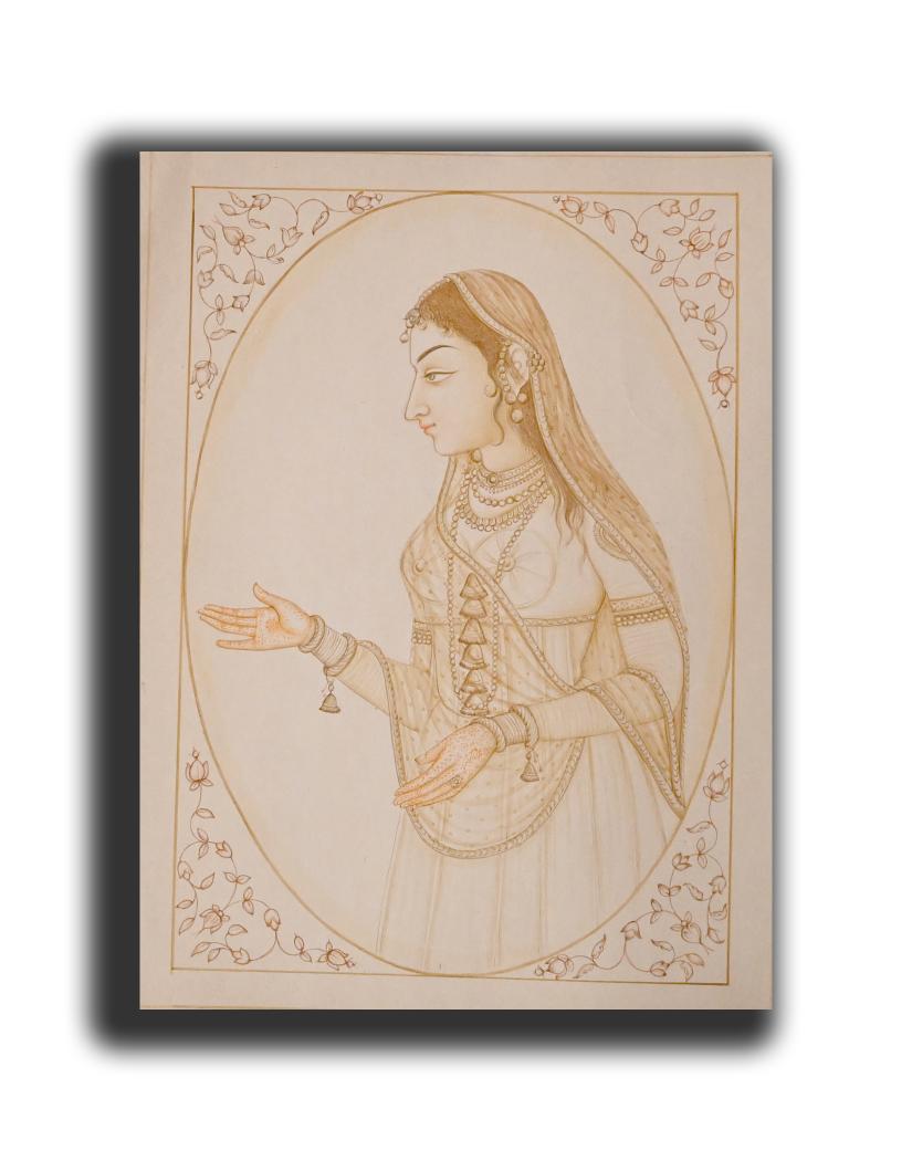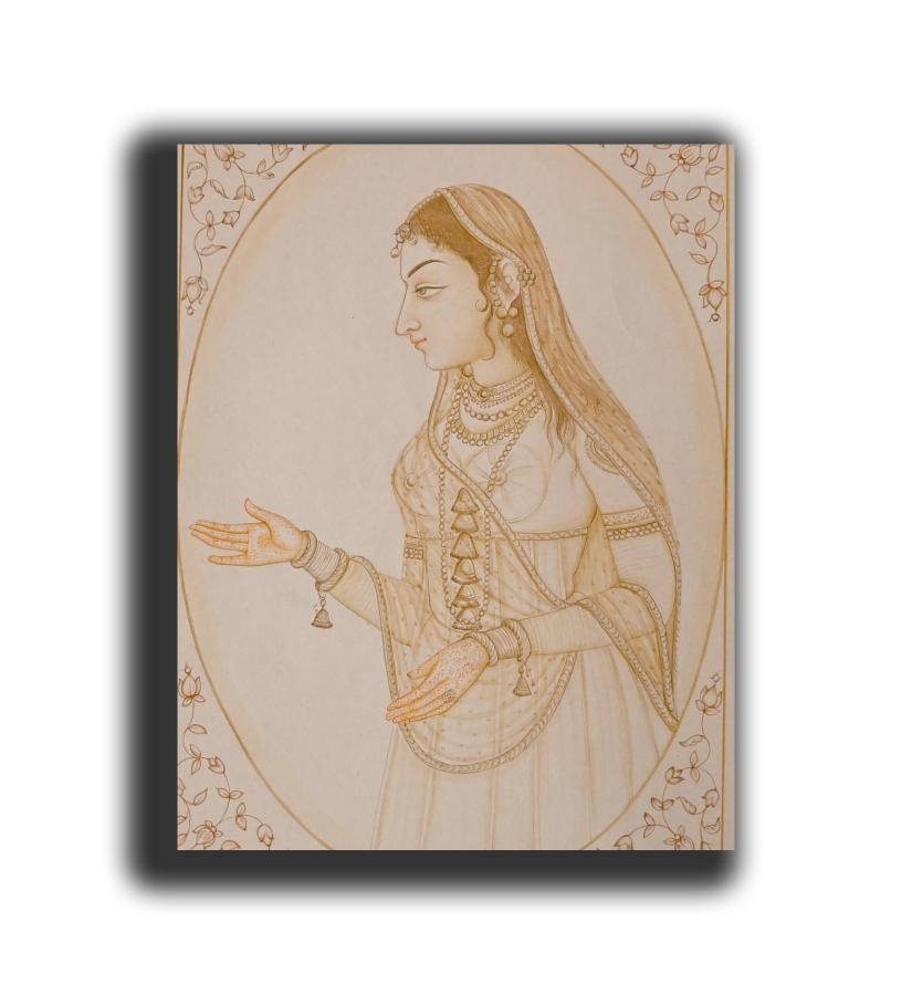 Rajputana Maharani Portrait Painting Shahkalam – Wall Decor
