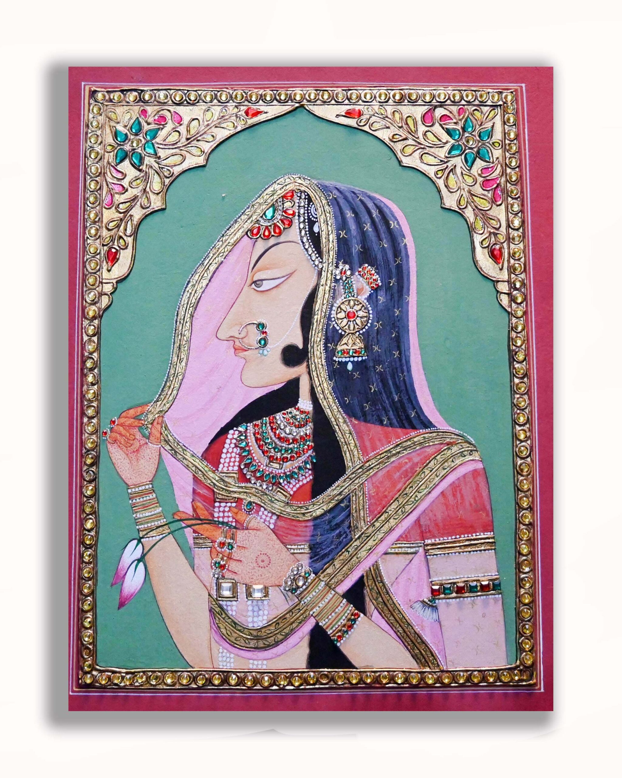 Rajputana Maharani Portrait Painting Handmade Wall Art and decor