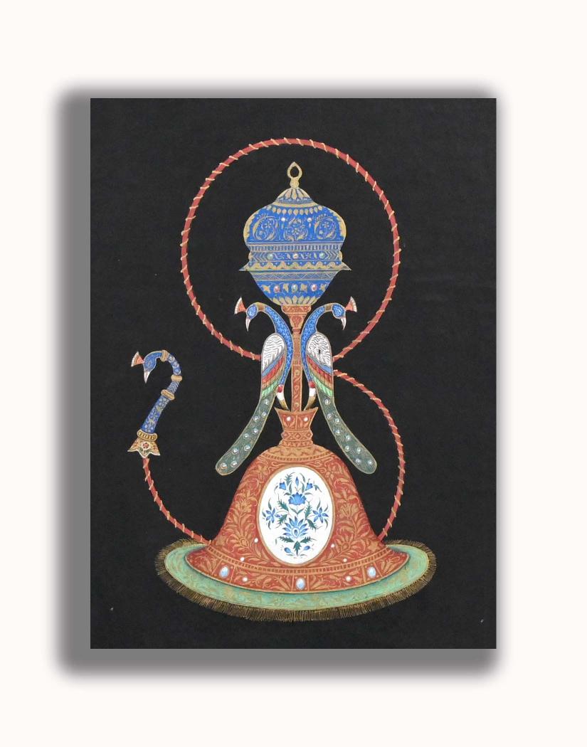 Real Gold Smoking Water Pipe Painting Handmade Miniature Fine Artwork