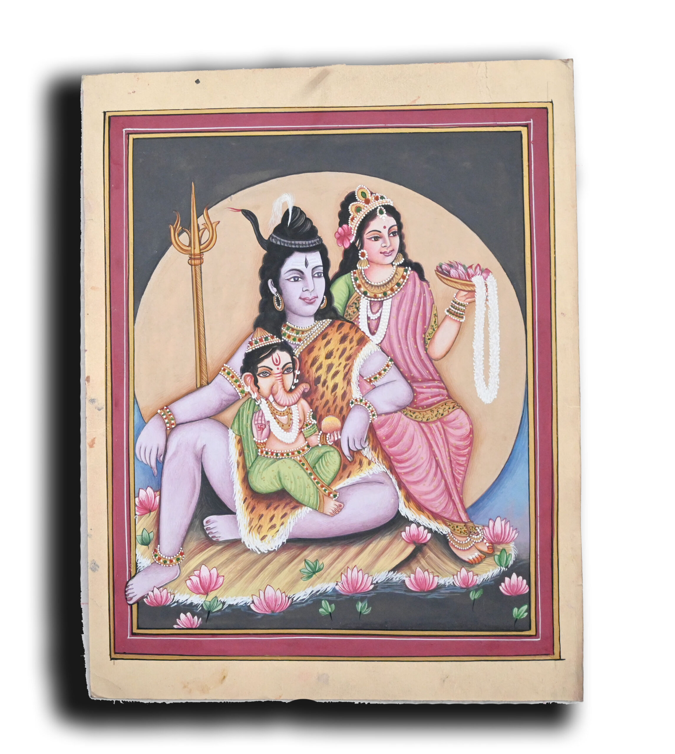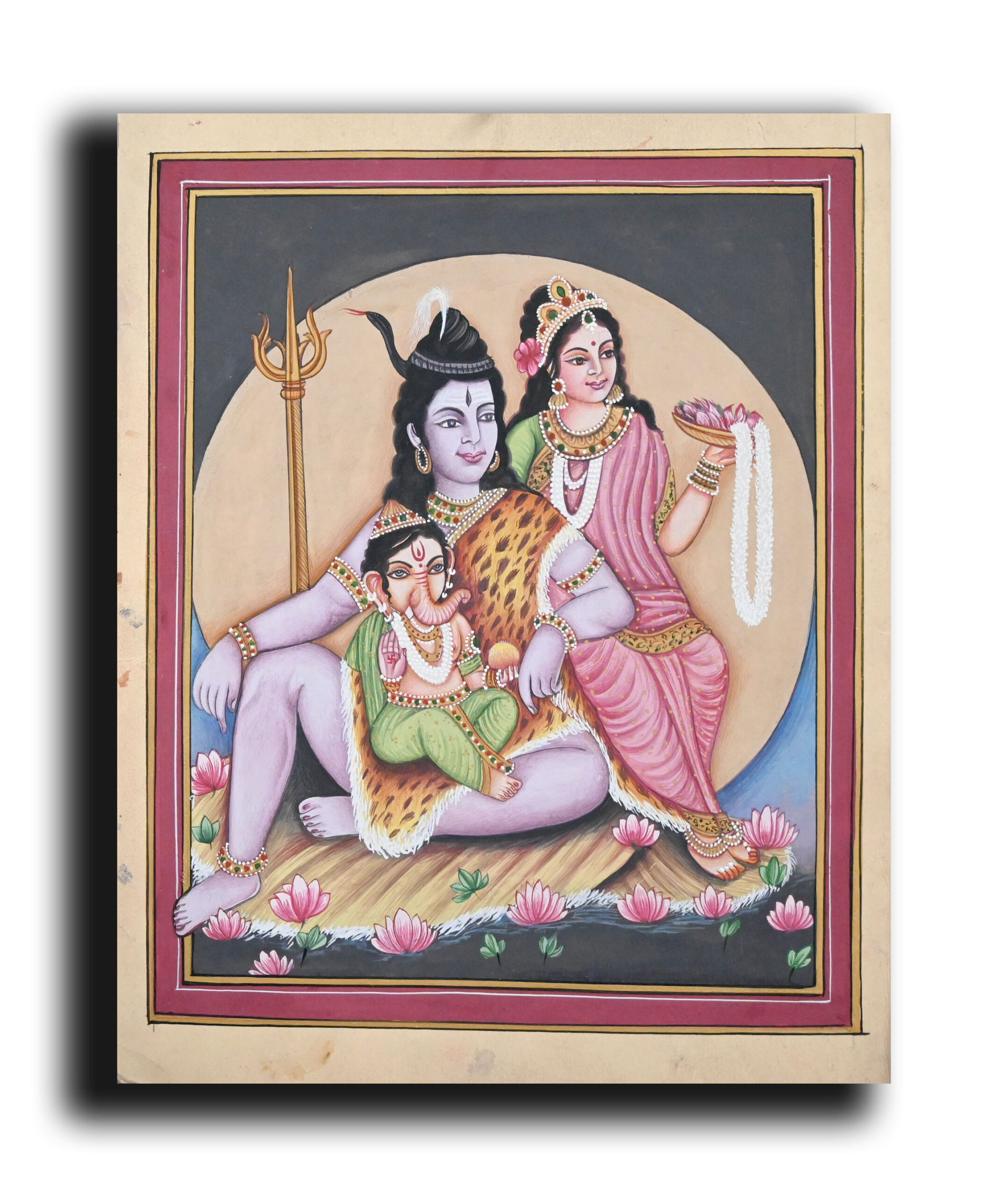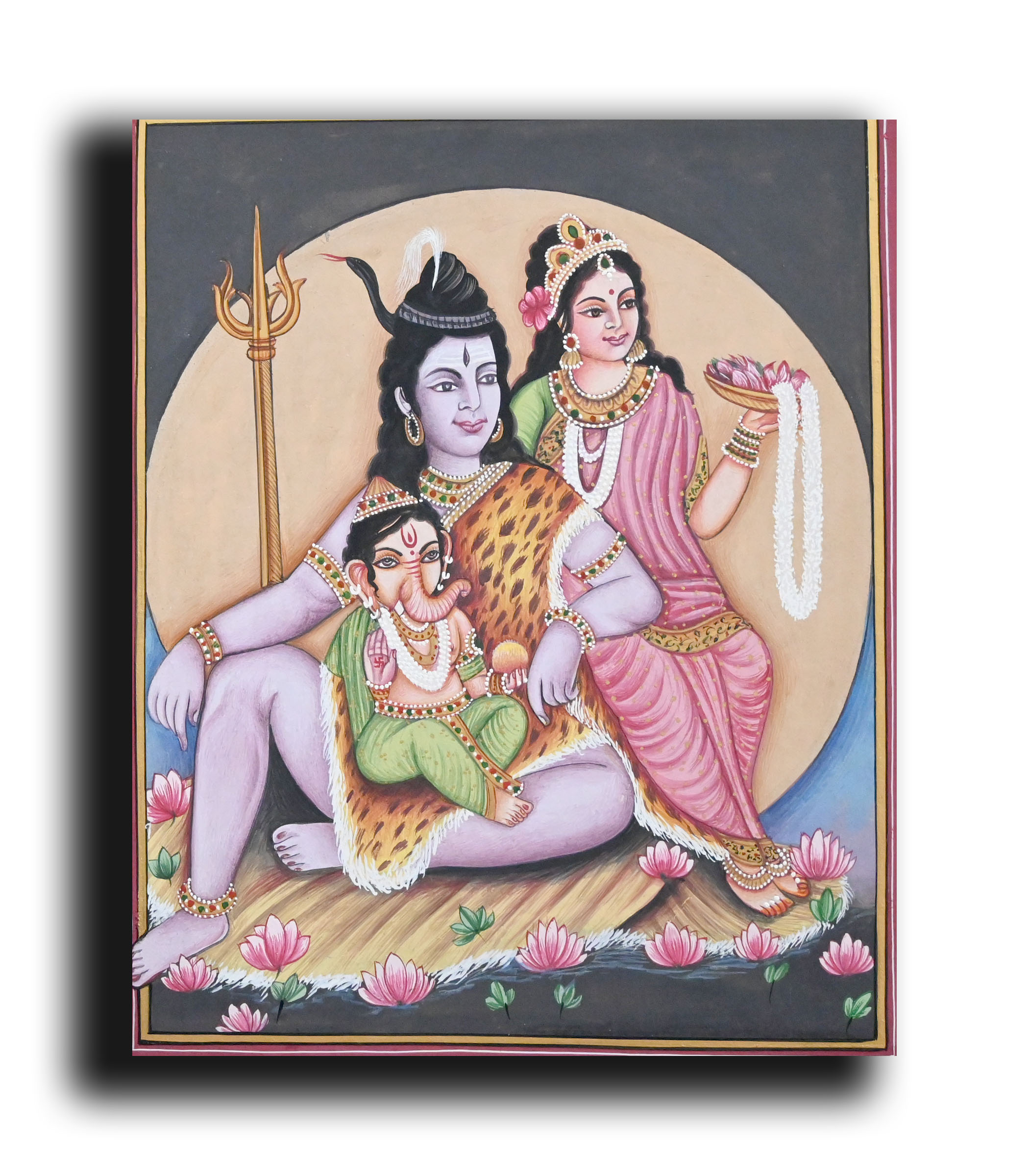 Shiv Parvarti Ganesha Painting Handmade Miniature Religious Art
