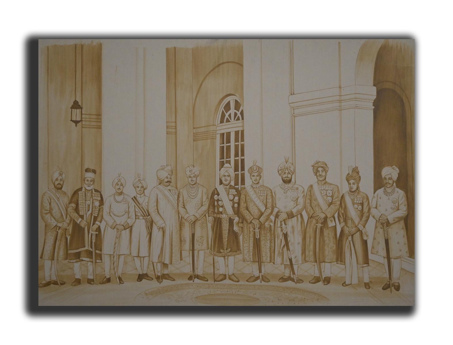 Portrait of The King Sikh With Their Friend Handmade Miniature Painting