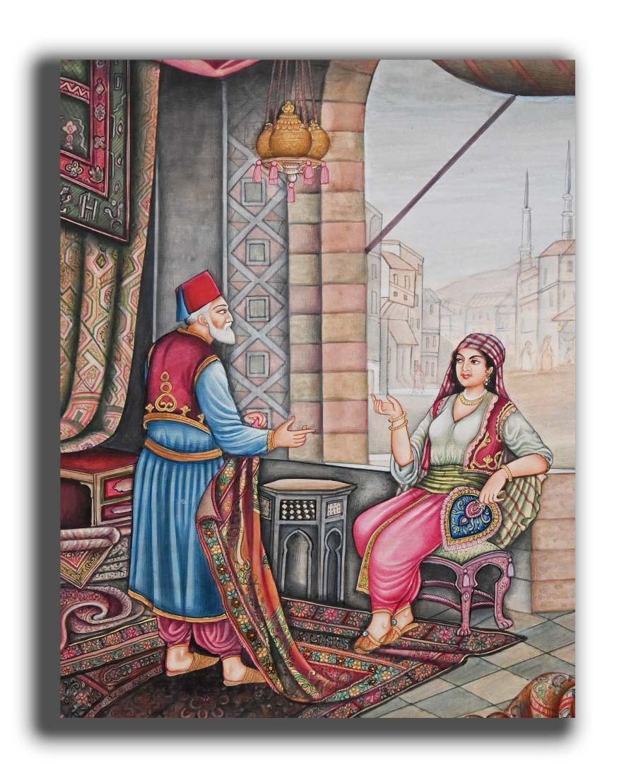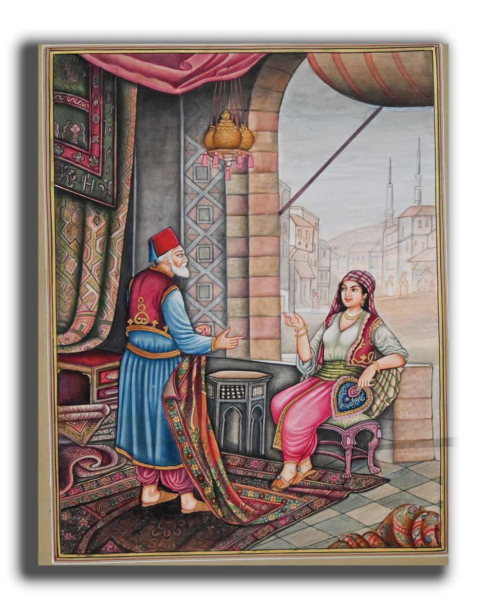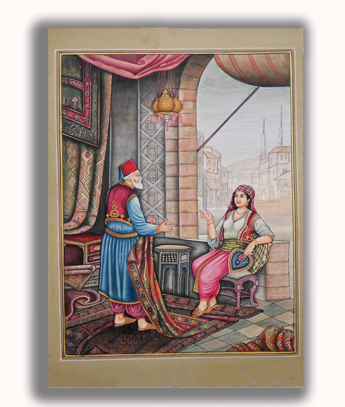 The Carpet Seller of Cairo Showing Carpet to women Handmade Miniature Painting