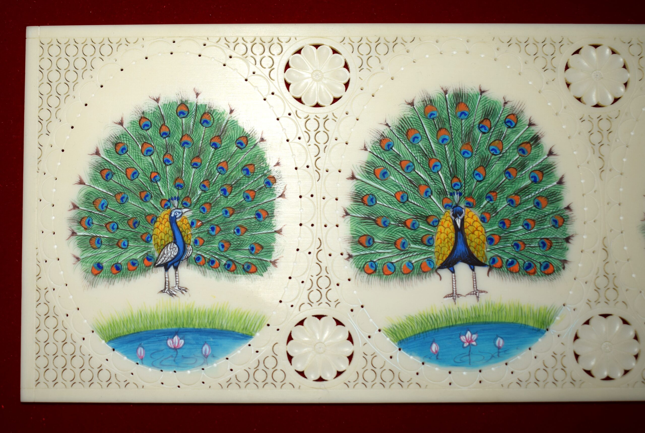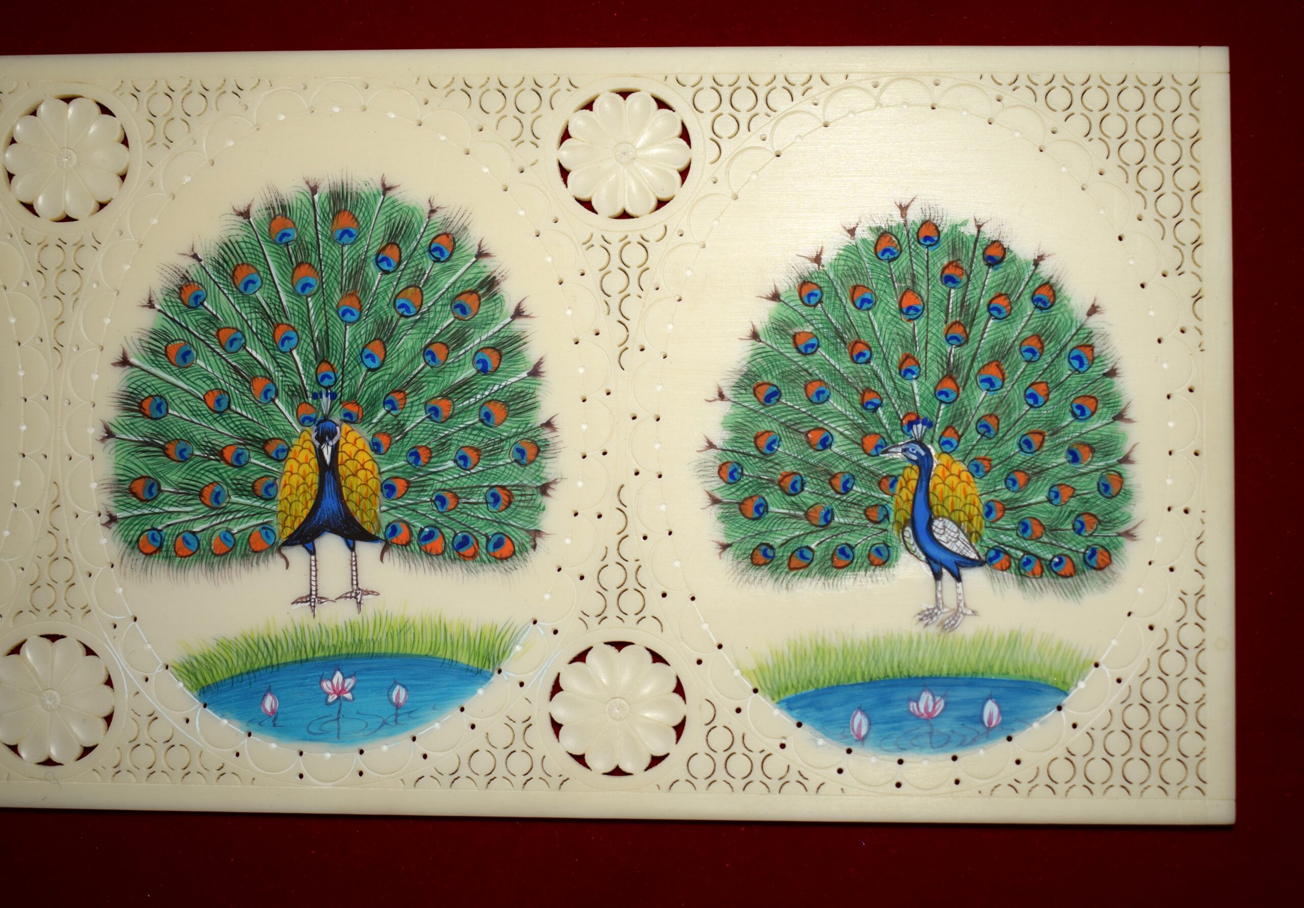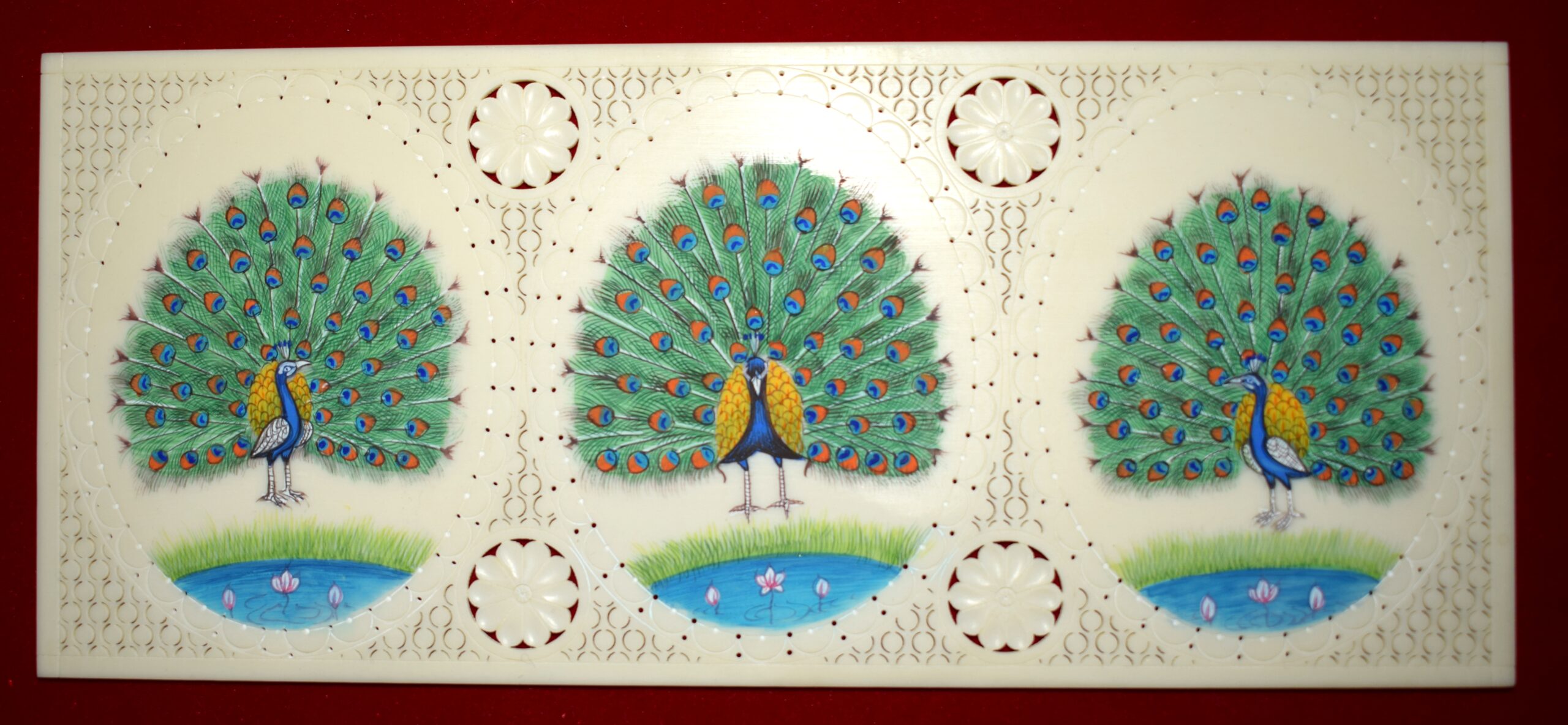 Trio Blue Green Feather Indian Peacock Painting Handmade Watercolor Bird Art quantity