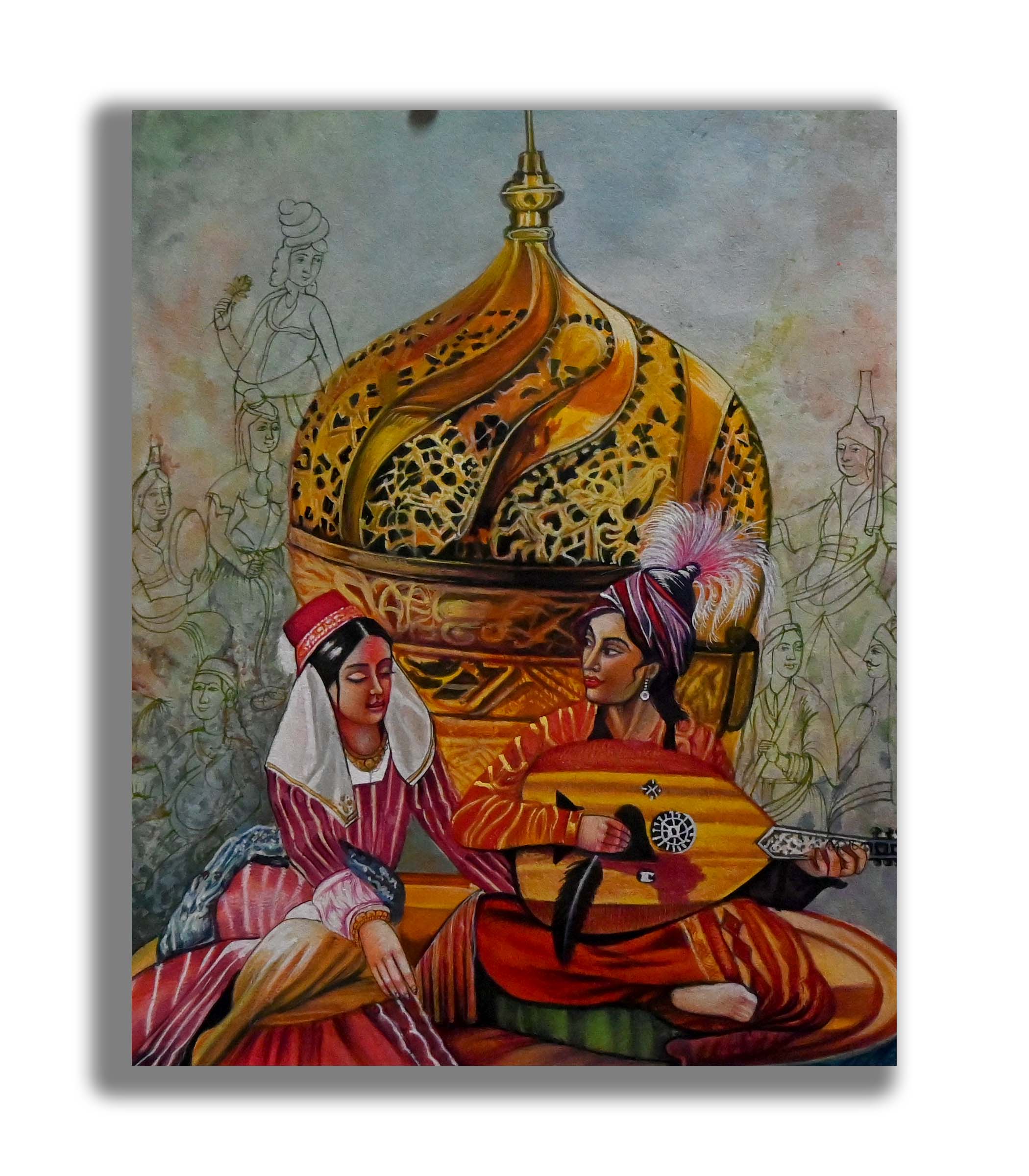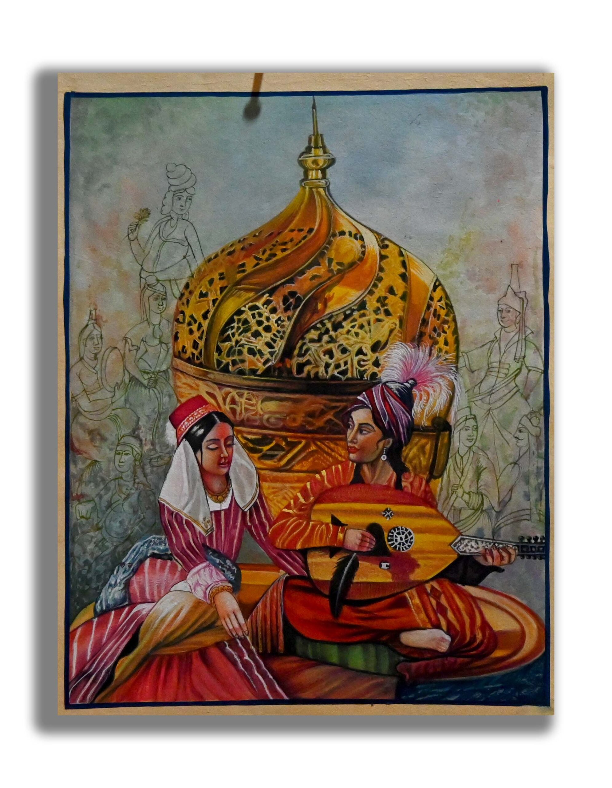 Free Shipping Worldwide & No hassle returnPresenting you the fabulous turkish miniature painting of two friends women who enjoying song while playing tar handmade miniature painting on paper.