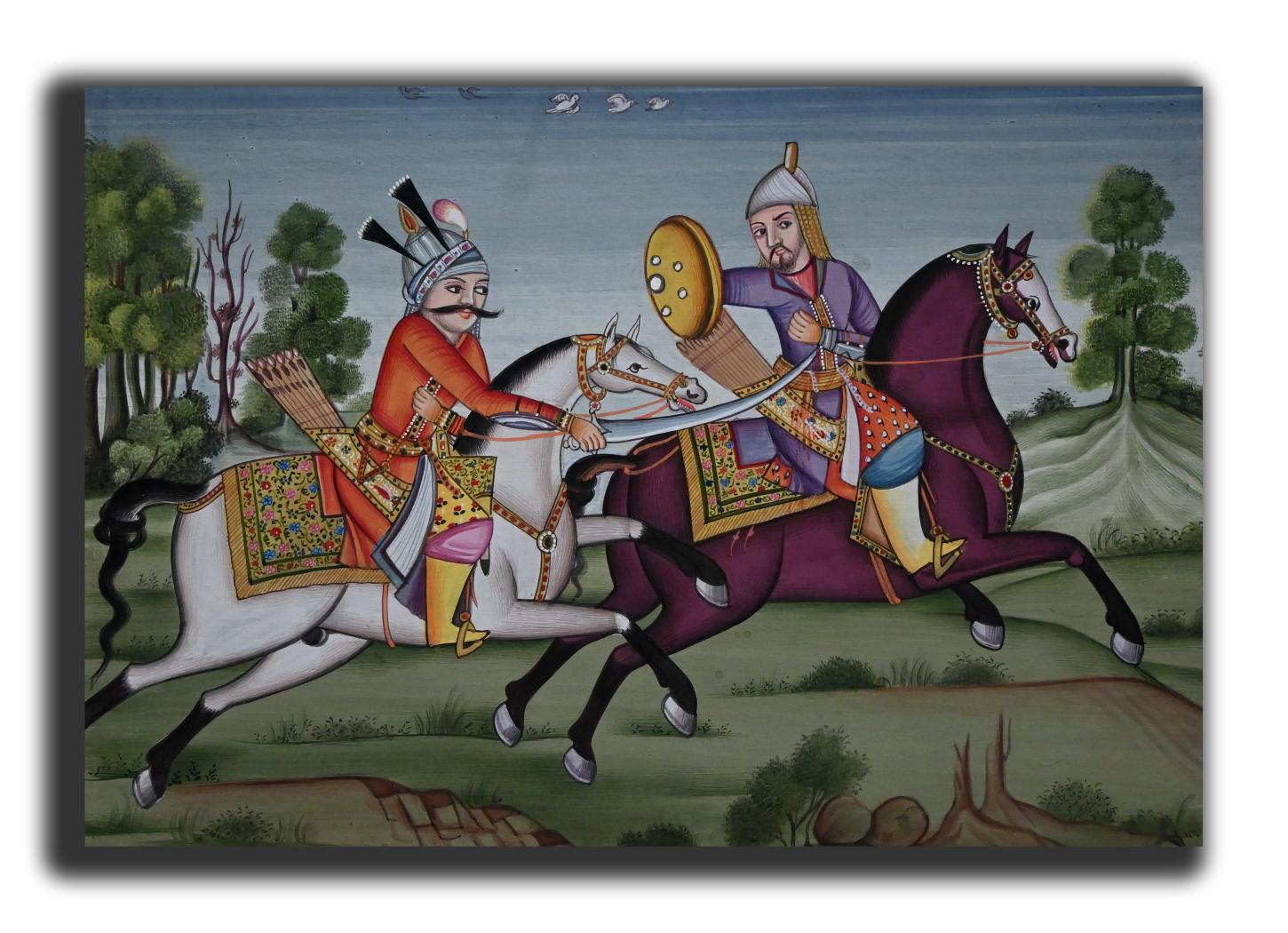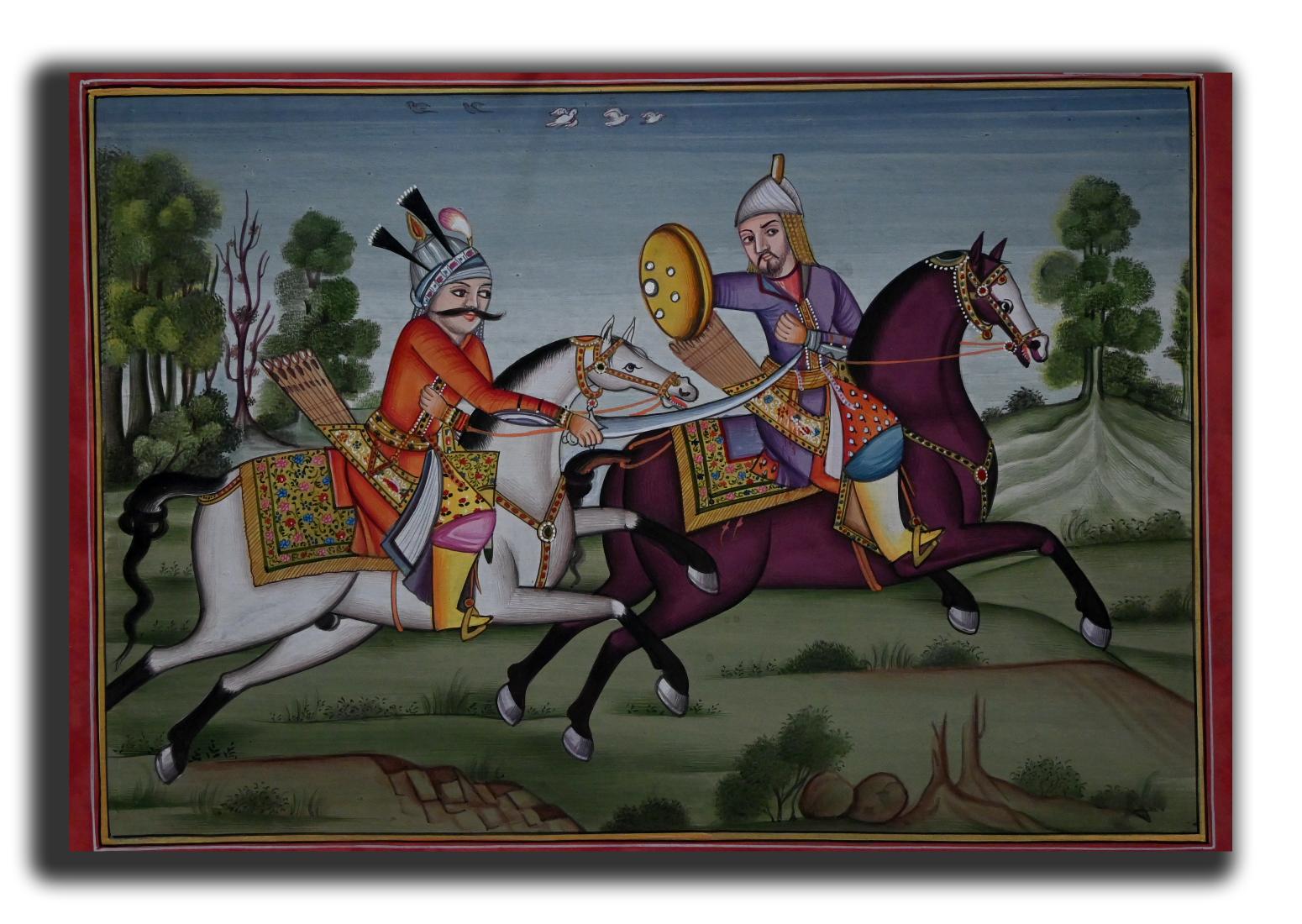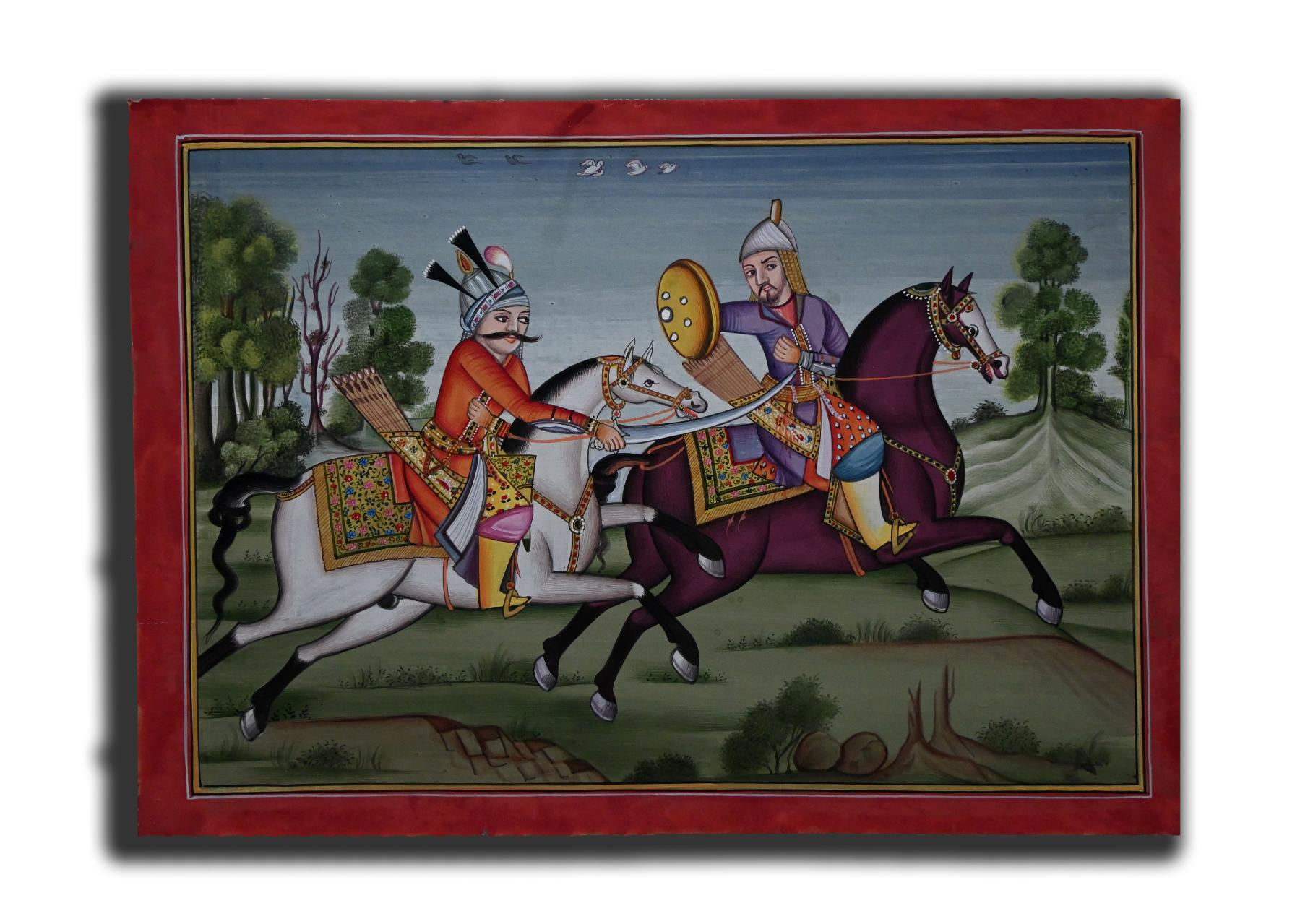 Presenting the two horseman battle fight handmade miniature painting from the book of shahenamah.