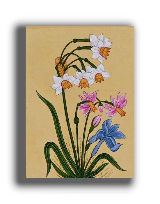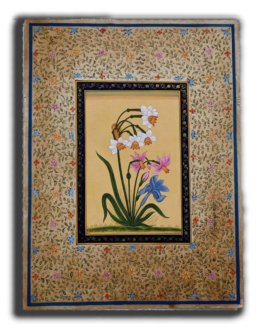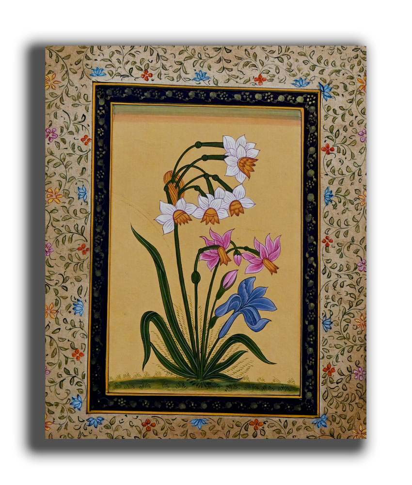 White Flower Detailed Handmade Miniature Painting with Detailed Floral Border quantity
