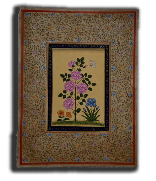 Beautiful Flower Handmade Miniature Painting Artwork with Floral Border