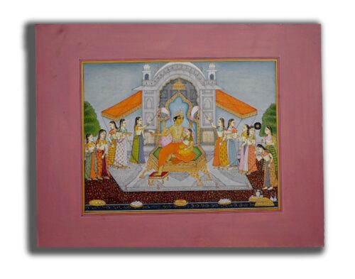 Vishnu with Lakshmi Enthroned – Religious Miniature Painting