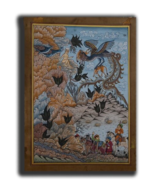 Zal Is Sighted by A Carvan Handmade Miniature Painting from Book Shahenamah