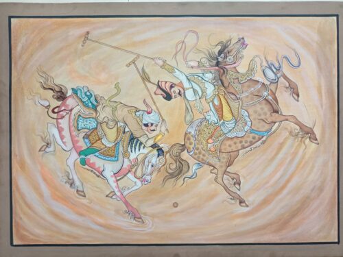 Meera Bai with her Friend Playing Veena Handmade Miniature Painting
